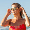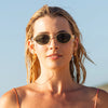 Style with Stevie. A stylish blend of nostalgic charm and contemporary sophistication. Taking inspiration from the iconic '90s, these sunglasses feature a sleek oval shape with carefully tapered temples that add a refined touch to any look. Crafted with a modern metal frame with tangelo plant based acetate detailing, the Stevie sunglasses are the ultimate accessory to elevate your ensemble, whether you're lounging by the beach or dressing up for an event.