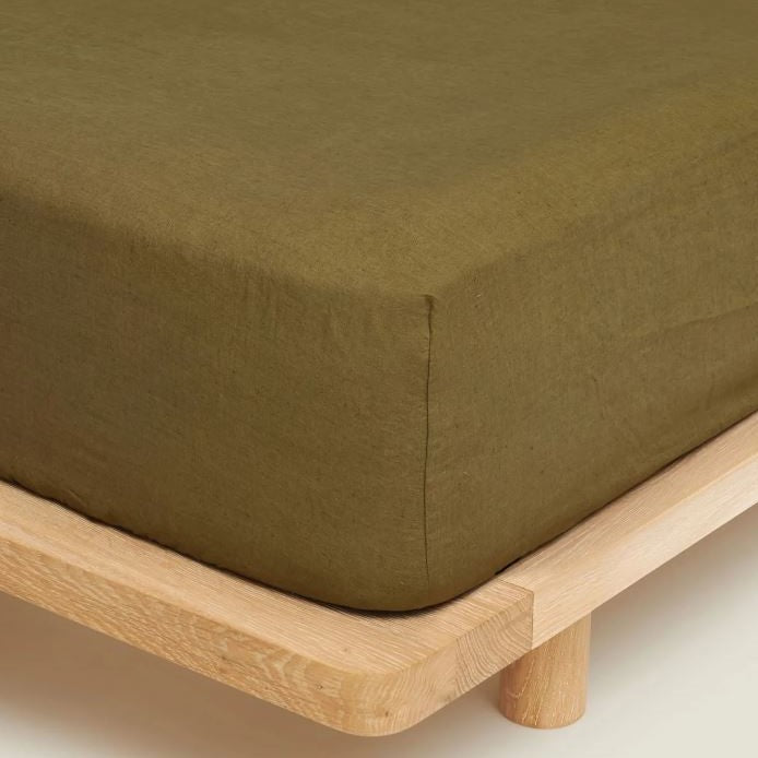 100% Linen Fitted Sheet | Olive