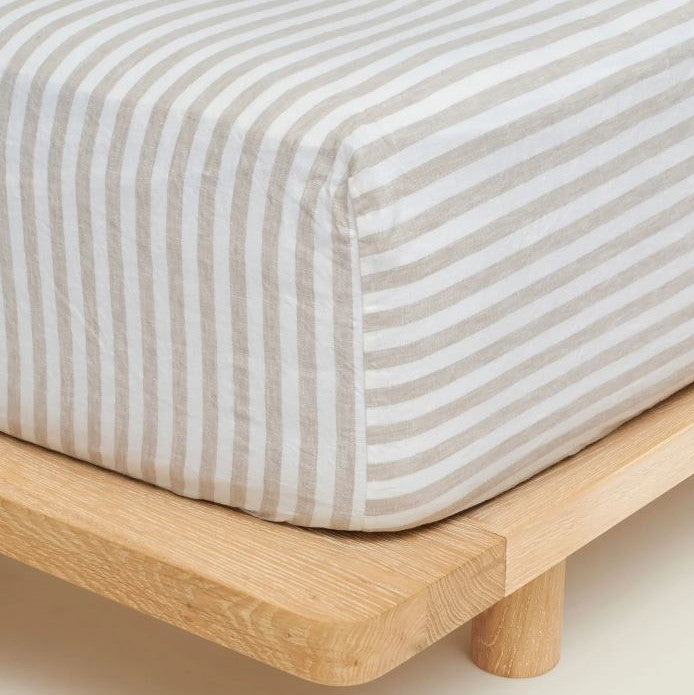 100% Linen Fitted Sheet | Wide Natural Stripes