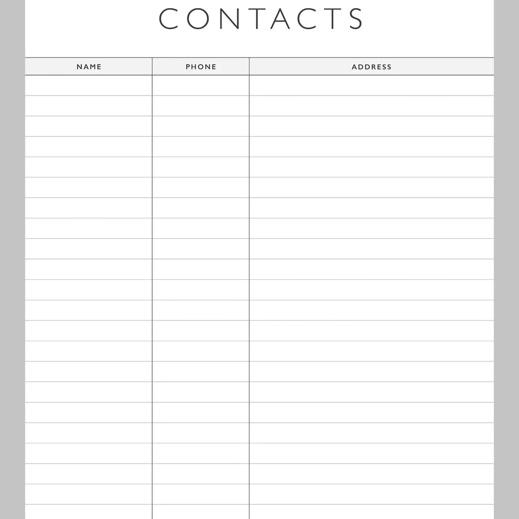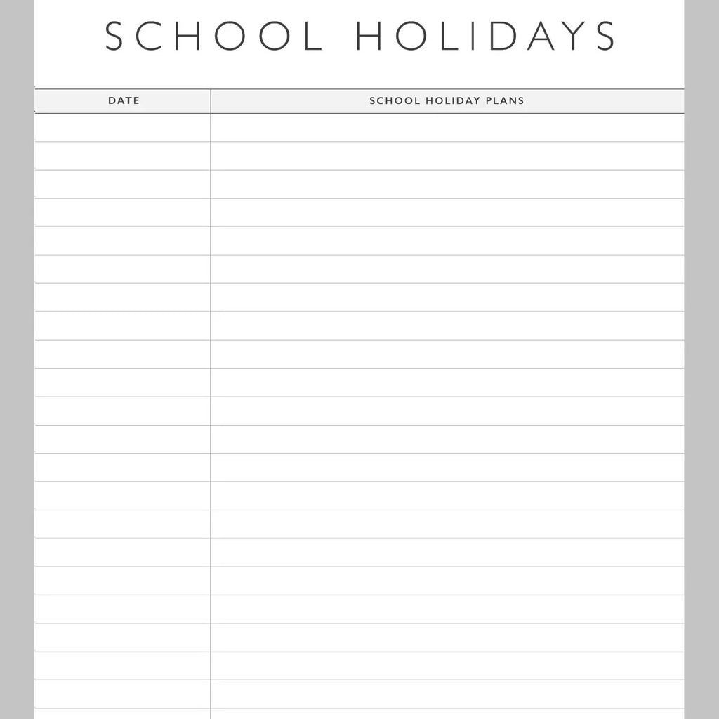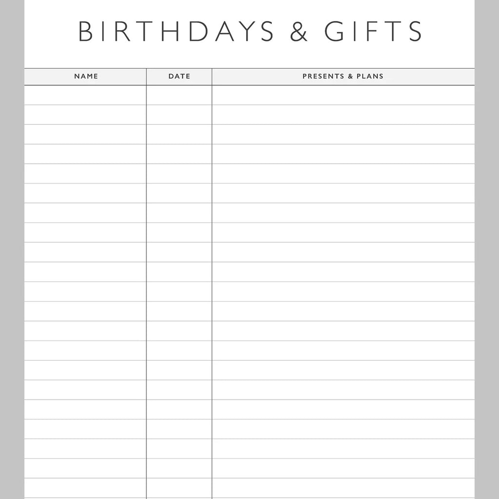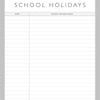 Handy extras Contacts page, birthday & gift chart, school holiday planner.