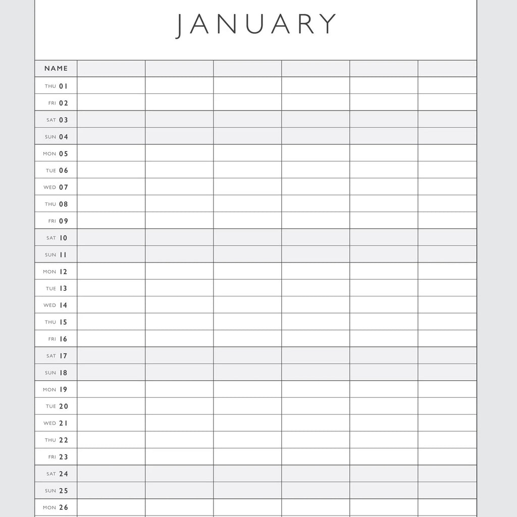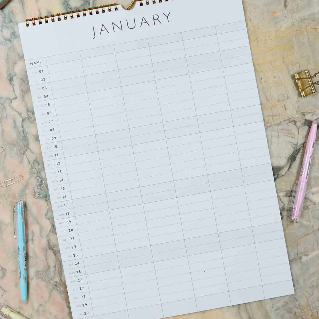 This calendar is a total life-saver for busy households where everyone’s got somewhere to be (often at the same time). With six columns, each family member gets their own spot to record every appointment, activity, and important date. Spare columns? Turn them into a birthday tracker, special events list, or even a schedule for the family pet (because vet visits count too).