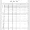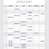 13-month layout January 2026 through January 2027 for full-year coverage plus January overlap.