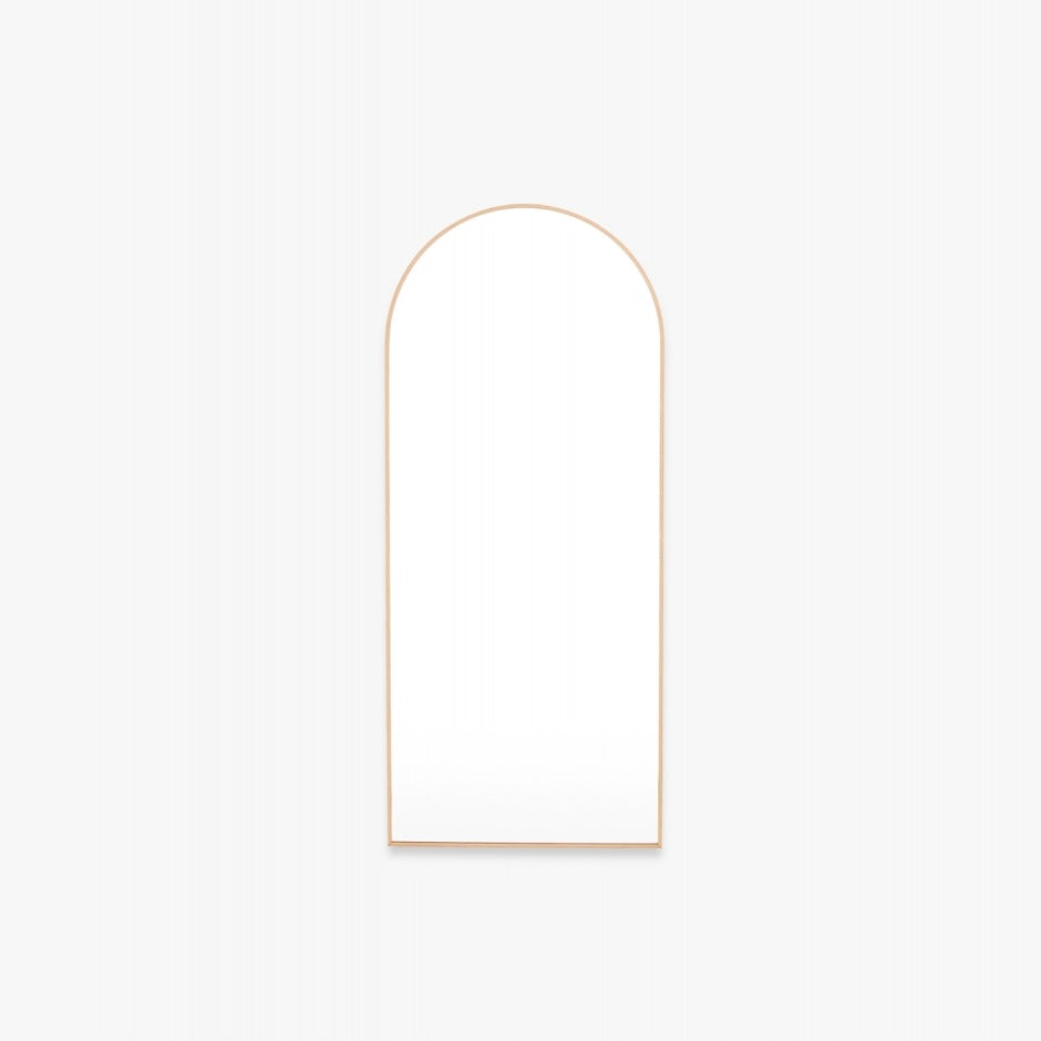 This mirror features a slim metal frame, finished with a light oak-look synthetic wrap. This modern timber-inspired colourway is endlessly versatile, complimenting both bright and neutral colour schemes.