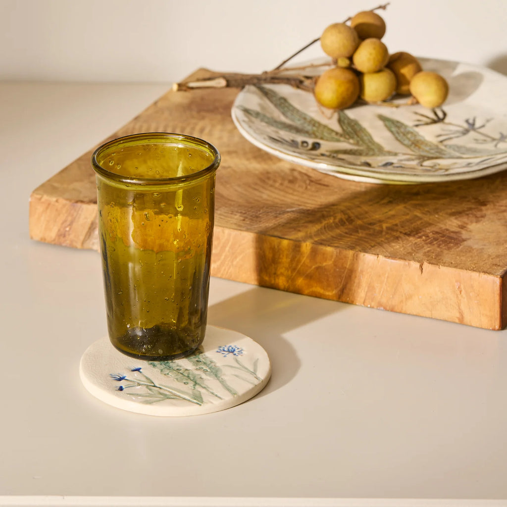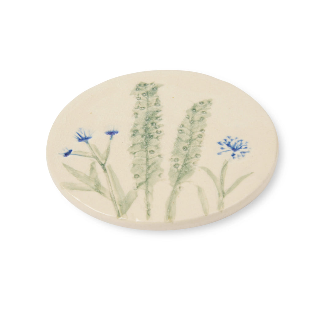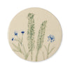 Natural coloured ceramic coaster with hand-painted botanical design.