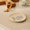 Natural coloured ceramic small plate with hand-painted botanical design.
