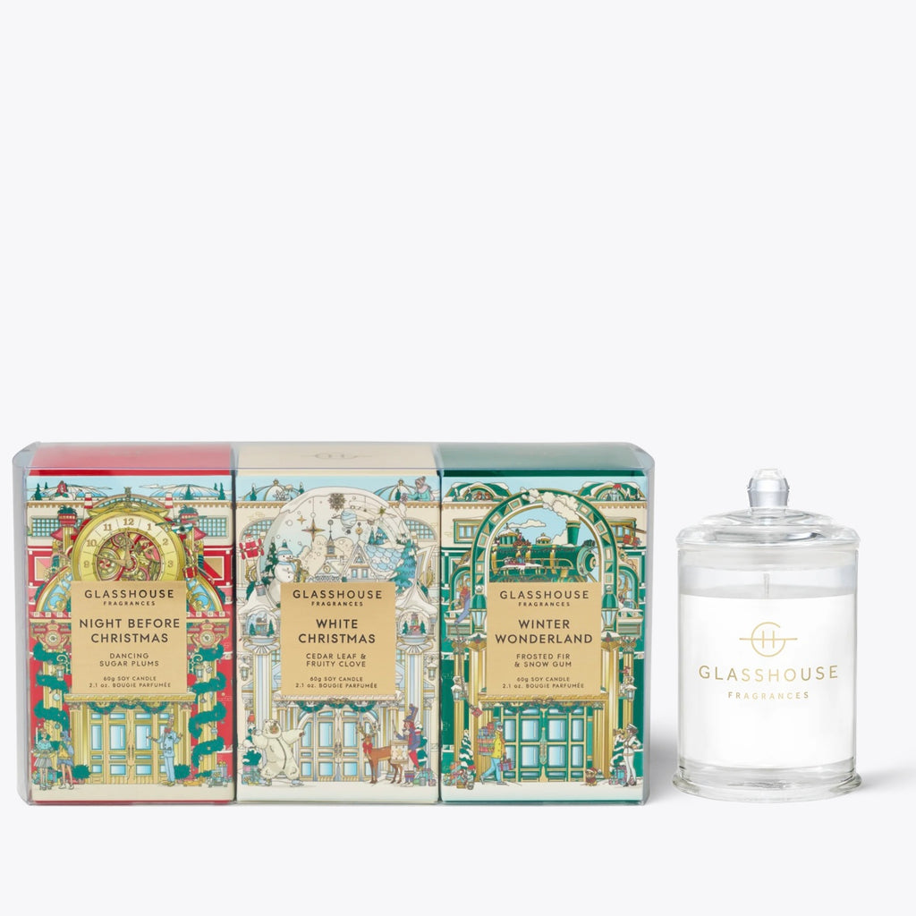 Contains: 3 x 60g Candles: Winter Wonderland, Night Before Christmas & White Christmas