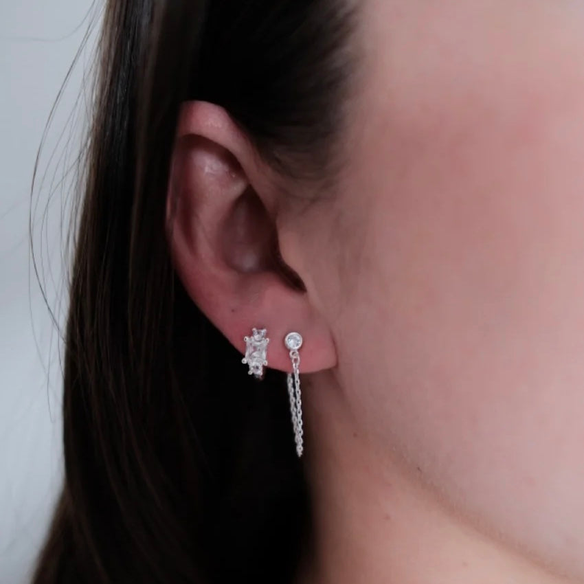 The Crystal Chain Wrap Earring is a modern take on a classic stud. Featuring a sparkling crystal set in a sleek bezel and a delicate gold chain that wraps elegantly around the ear, this style blends subtle sparkle with edgy sophistication. Perfect for layering with other studs or hoops, it’s a versatile piece that transitions effortlessly from day to night.