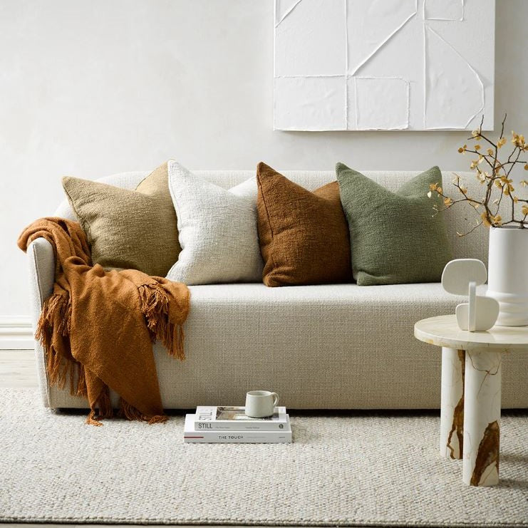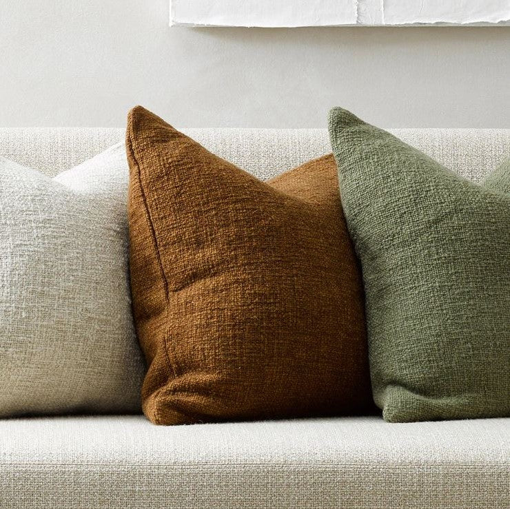 Engage your senses with the exceptional texture and soft lustre of the Cyprian. Thick, handwoven slub yarns offer an artisan aesthetic, while the rich, earthy tone creates an inviting and contemporary space. The minimal design makes the Cyprian a versatile pairing cushion, or a beautiful feature when used on its own.