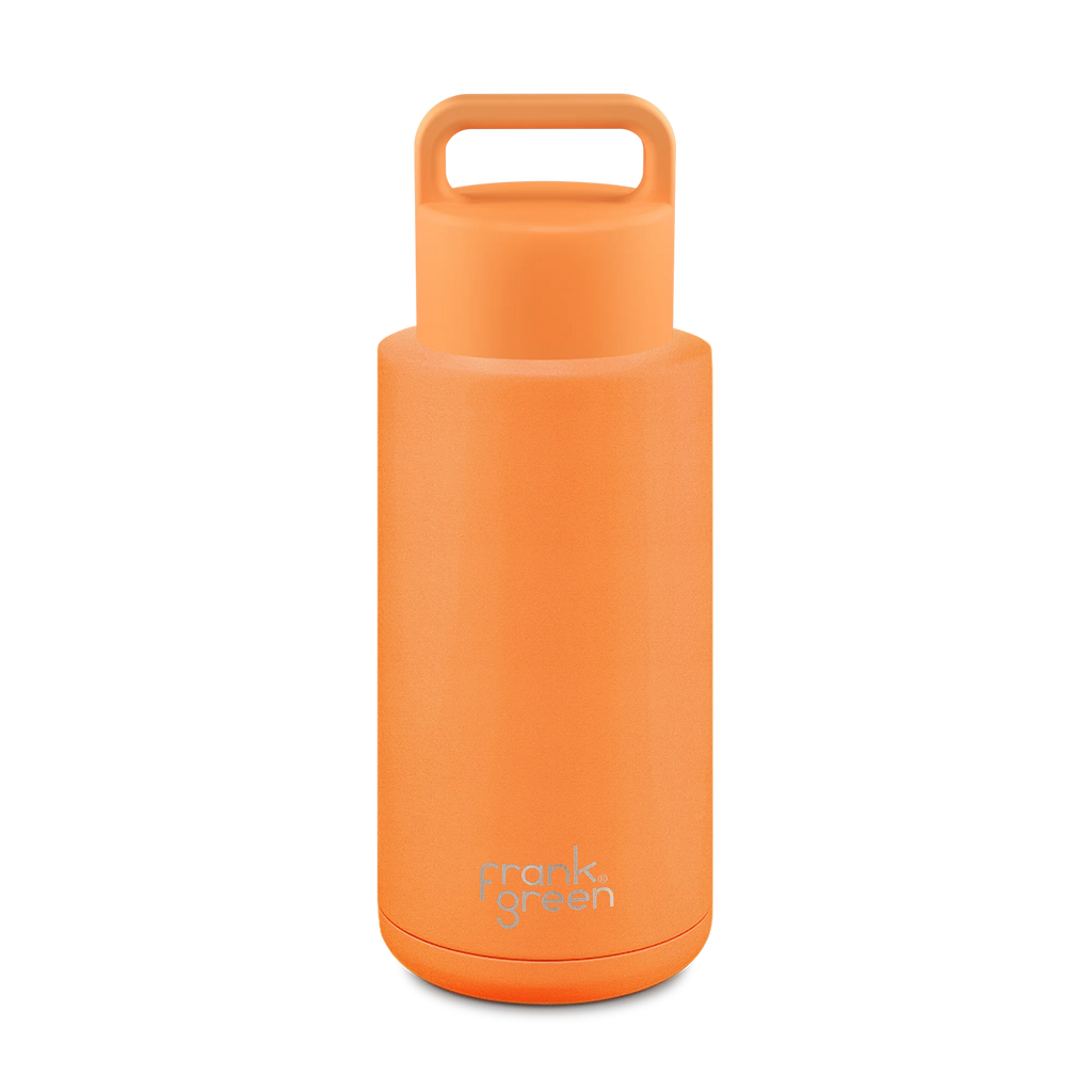 Grip Lid Stainless Steel Reusable Bottle with Straw (34oz) Neon Orange