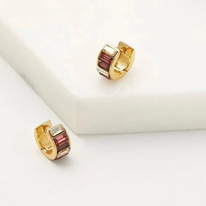 A charming accessory that combines the comfort of a huggie earring with the dazzling beauty of crystals. These huggie earrings feature variants of rouge-coloured crystals, adding a touch of vibrant colour and sparkle to your earlobe. The Kira Huggie earrings are designed to comfortably hug your ear, making them perfect for everyday wear or special occasions. With their versatile and eye-catching design, these earrings effortlessly elevate any ensemble.