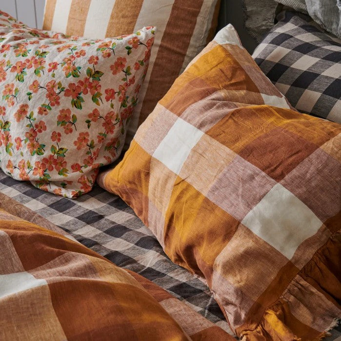 Licorice Gingham is charcoal and natural coloured linen