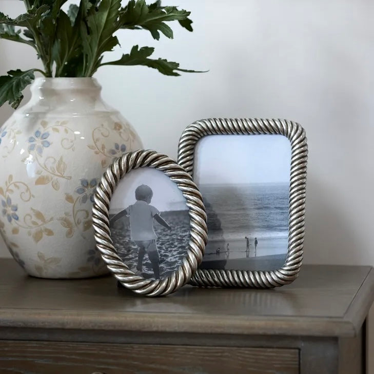 Silver thick rope style photo frame with rounded edges. The perfect way to display treasured moments.