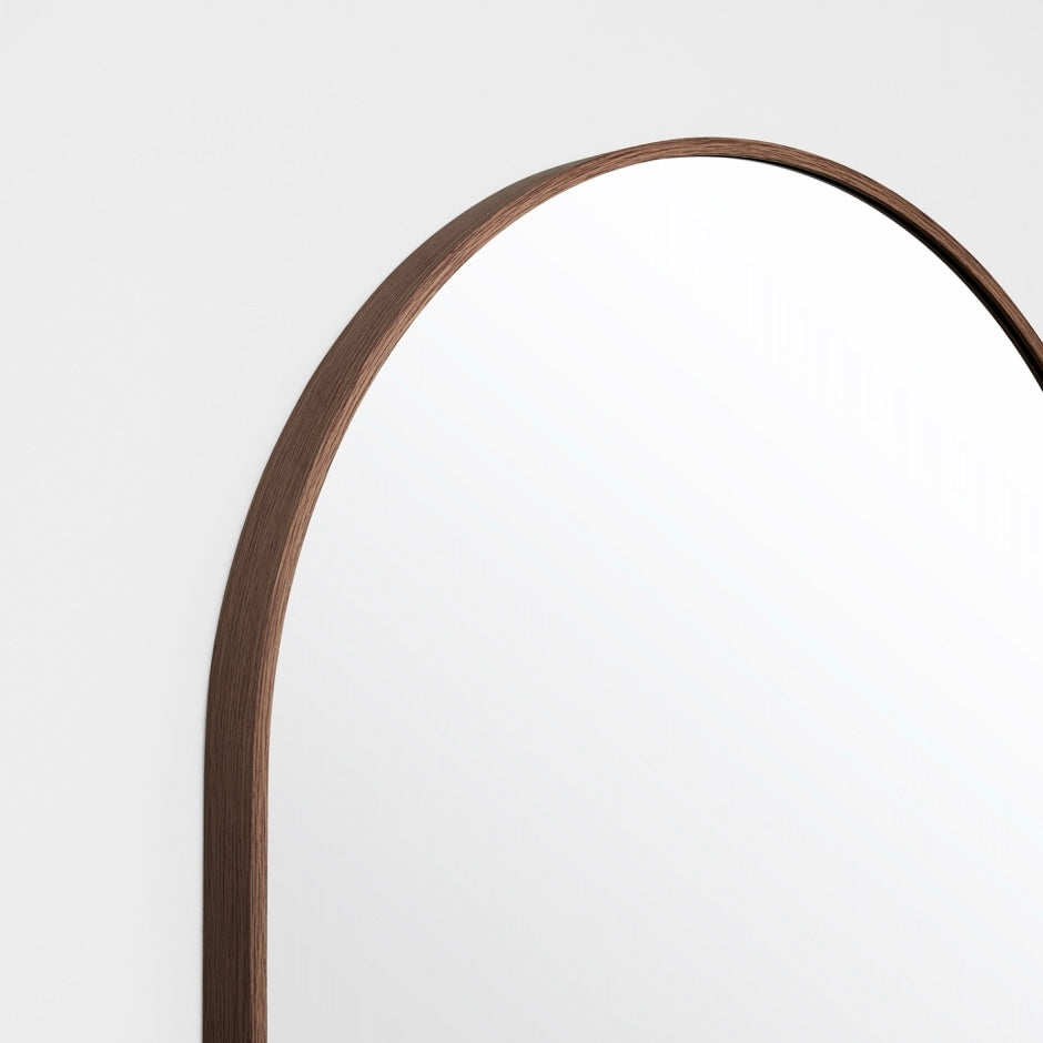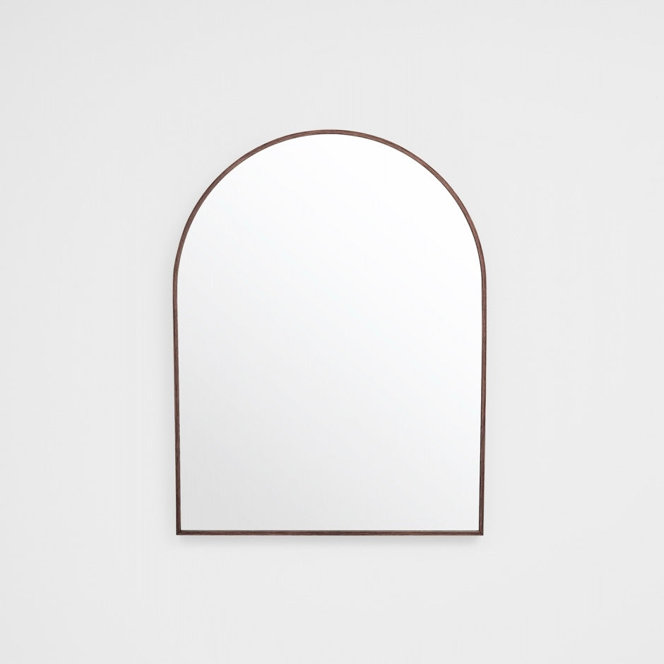 This mirror features a slim metal frame, with a beautiful walnut-look finish. This elegant timber-inspired colourway is endlessly versatile, complimenting both bright and neutral colour schemes.