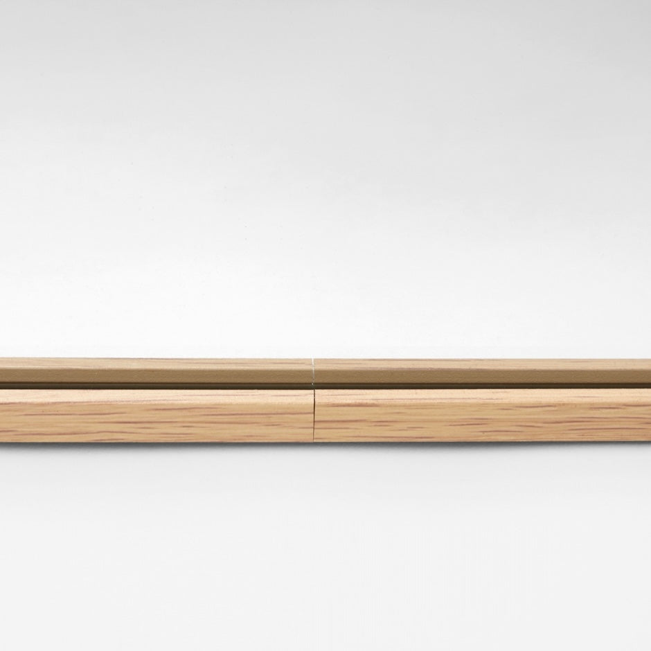 This mirror features a slim metal frame, finished with a light oak-look synthetic wrap with a simple join at the base of the mirror. This modern timber-inspired colourway is endlessly versatile, complimenting both bright and neutral colour schemes.