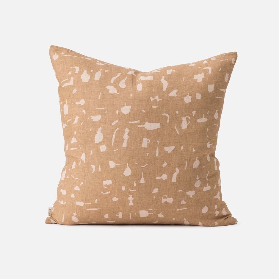 Add warm tones and simple forms to your home with this Still Life Cushion Cover. The design features elemental illustrations inspired by everyday objects found in your home. 55x55cm 100% Linen Care - Remove feather insert before washing. Warm machine wash separately inside out. Do not soak or bleach. Do not rub when wet. Tumble dry on low. Warm iron. Do not dry clean. Fabric fades over time. Avoid direct light sources.