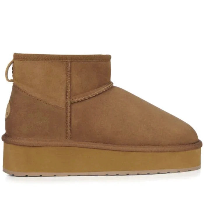 Introducing the Stinger Micro Flatform by EMU Australia — a contemporary twist on the classic Australian sheepskin boot. Crafted from water-resistant, double-face sheepskin, these boots effortlessly blend the latest street style with a fashionable lowline ankle silhouette.