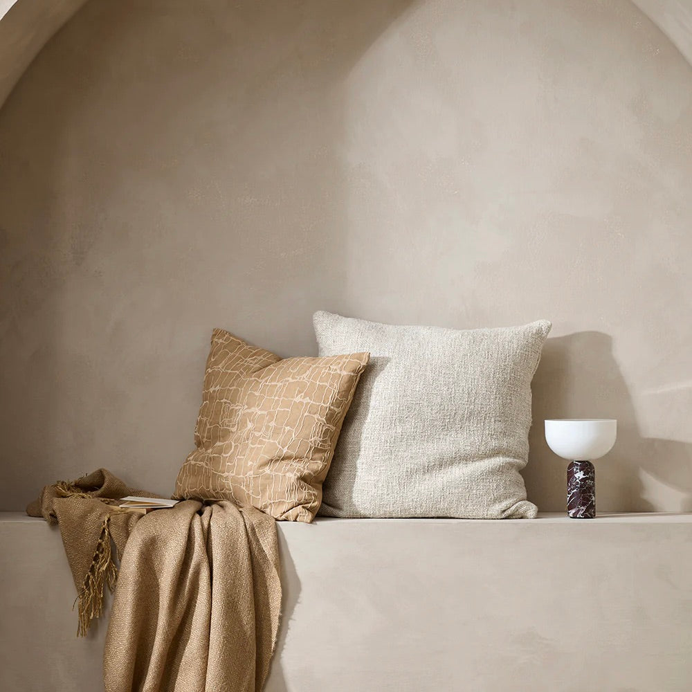 Delicate webbing and the warm hues of sunset combine in the ethereal design of the Triton cushion. Crafted on a linen base, a gentle sense of movement is captured through matte, tone-on-tone embroidery, adding a subtle, sensory dimension to this piece.