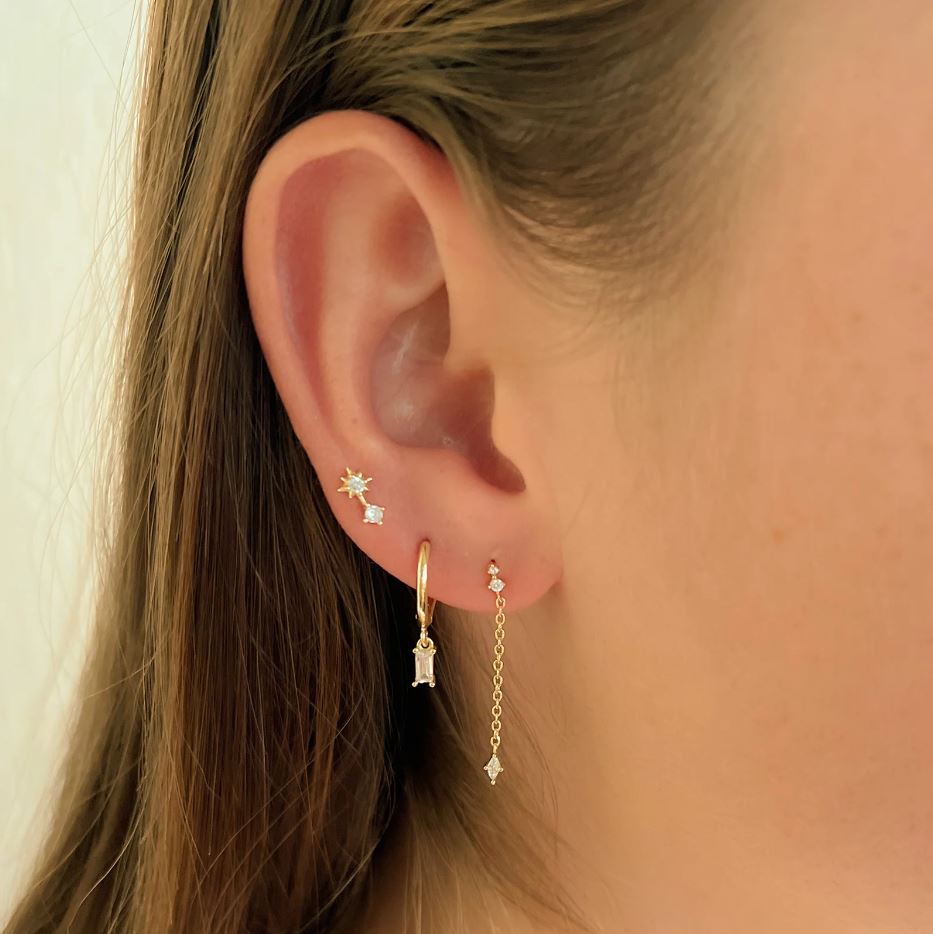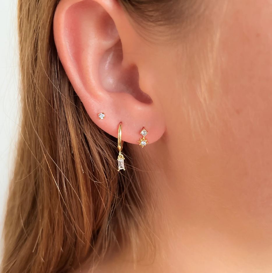 For a star studded style, look no further than our gorgeous Bonnie Earrings! With a cute sparkling stone and star shaped drop, these beauties are going to make every stack shine to its maximum power!