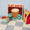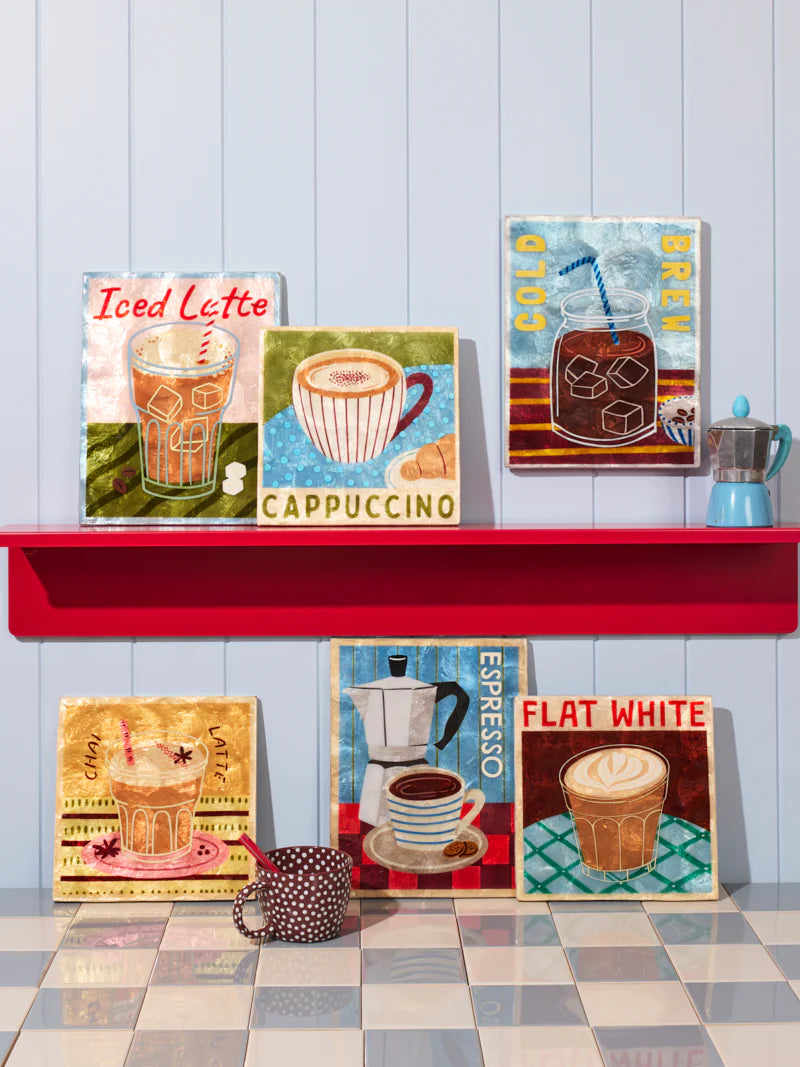 An ode to Australia's most iconic brew, the Flat White. This handmade capiz shell wall art is designed in Sydney and painted by our artisan partners in the Philippines. With its foamy heart and checkered table detail, it's a cheerful reminder of your morning (afternoon and evening) ritual. Lightweight and ready to hang, this piece makes a perfect gift for coffee lovers and a stylish accent for any kitchen wall.