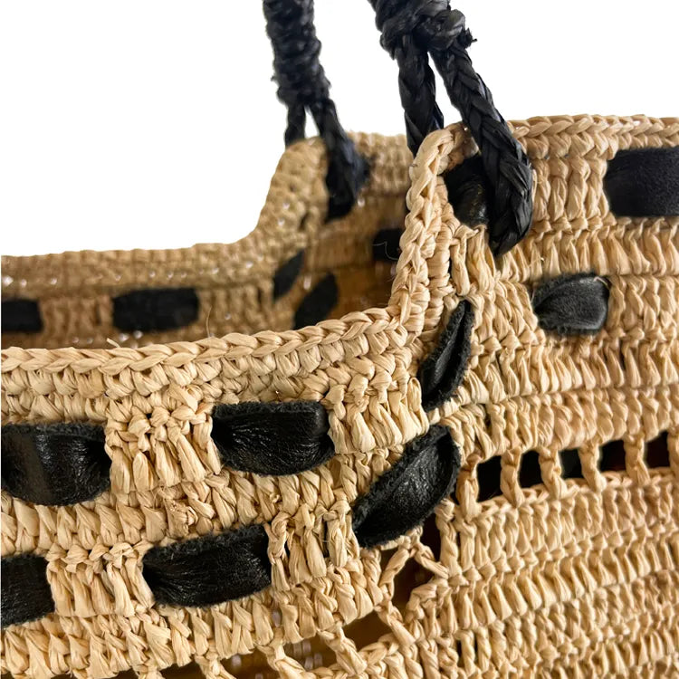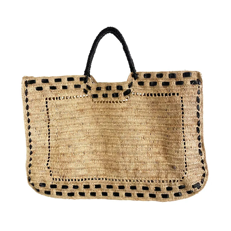 Material: Madagascan raffia straw 100% natural fibers and Leather