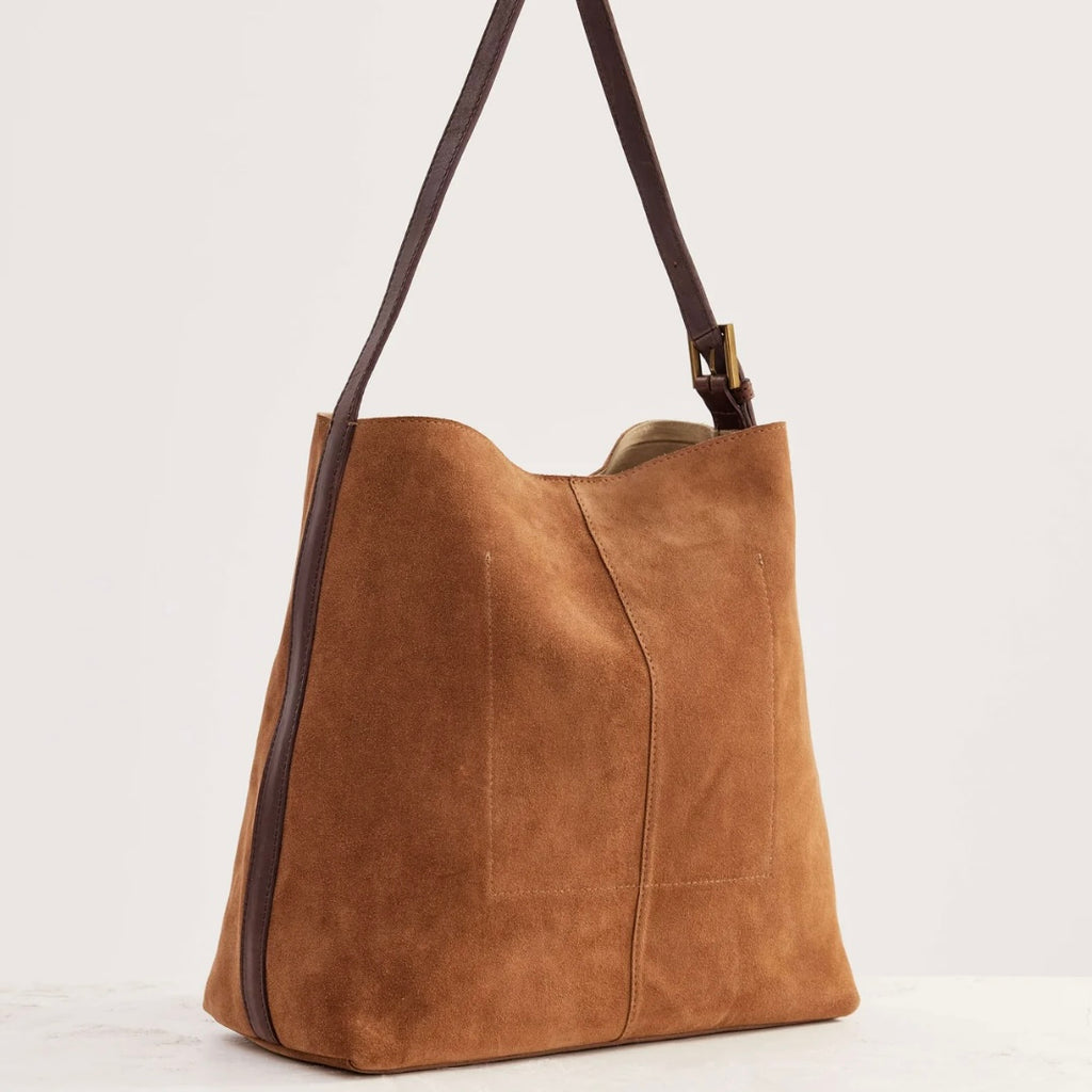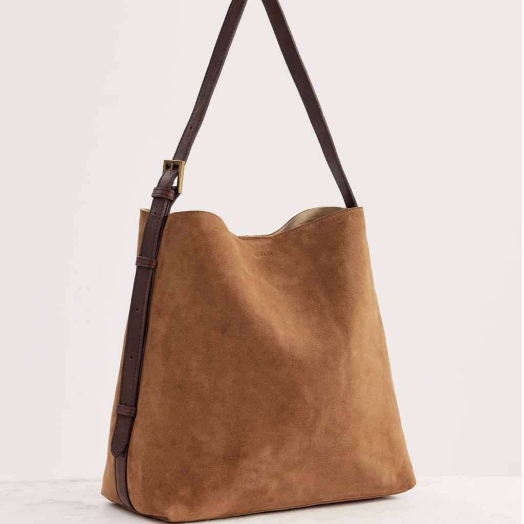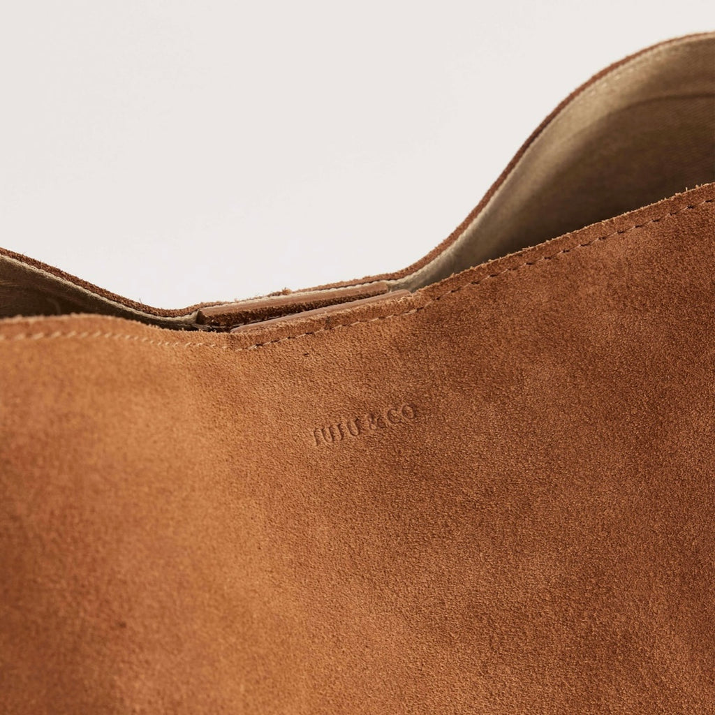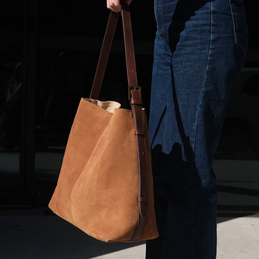 The Suede Cabas is a shoulder bag made from water-repellent suede. Featuring an