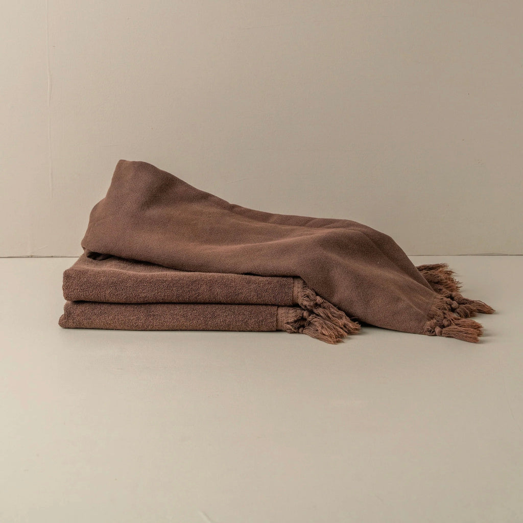 Our Clay Vintage Wash Towel Collection is flat-woven on one side, with a short terry weave on the other.