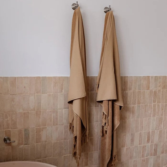 Wrap yourself in 100% Turkish cotton towels!  Saardé’s Nutmeg Vintage Wash Towel Collection is stonewashed for absorbency and a worn-in look that will elevate your bathroom into a stylish sanctuary. Generously oversized, every piece in this bathroom range is ready to drape, dry, and pamper you. Run the bath, light a candle and relax.