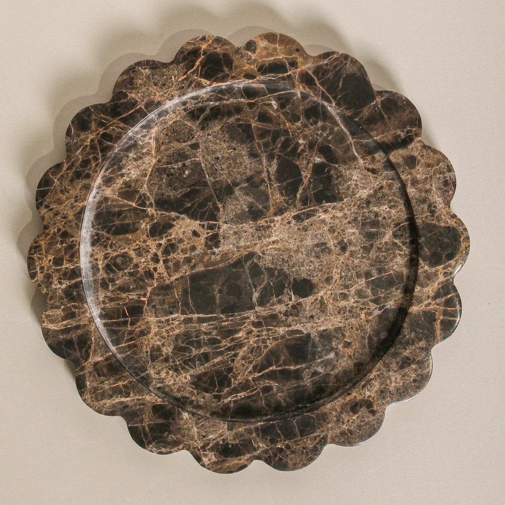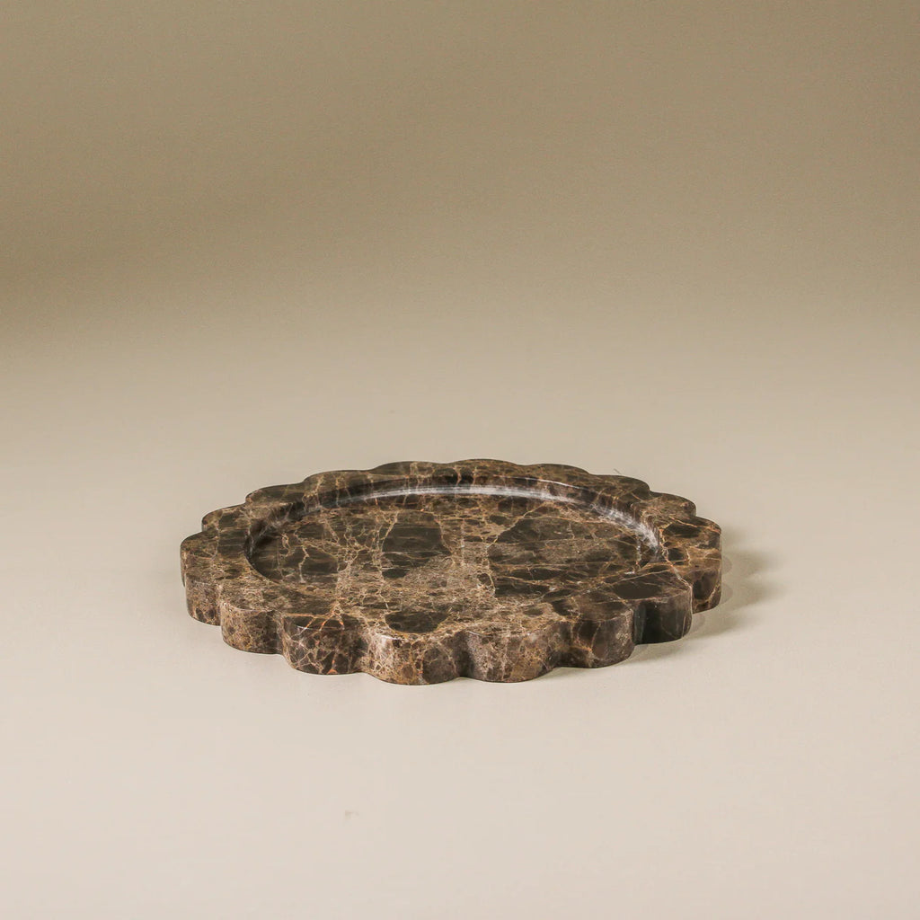 Curved, tactile, and crafted from natural marble, the Calile Tray adds colour detail to any vignette. Its soft scalloped edges echo the calming forms of the Tender Forms collection, offering both rhythm and beauty. Available in two stone finishes—Pink Lagoon and Brown Emperador—it’s ideal for styling a console, dining table, or vanity. Use it to display collected items, candles, or jewellery and bring a gentle, grounded moment to everyday rituals.