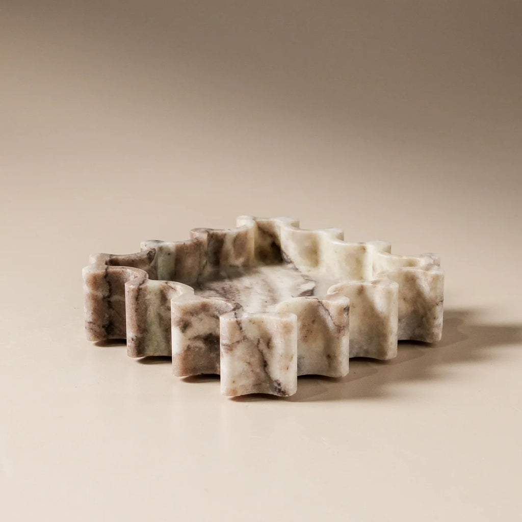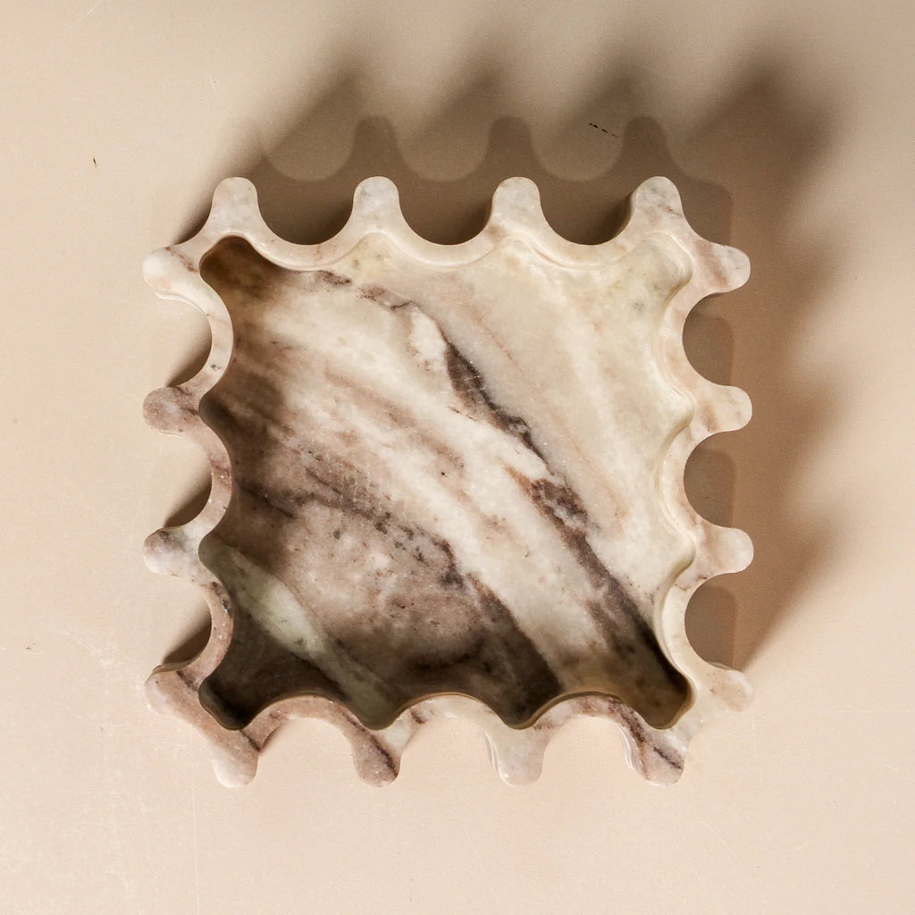 Carved from Toronto marble, the Fleck Tray brings tactile intrigue and timeless elegance to any space. Its undulating edges offer a modern reinterpretation of classical stonework — a statement piece, both functional and artful.