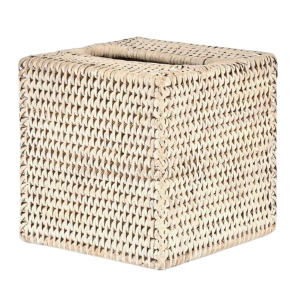 Paume Rattan Square Tissue Box | White Wash