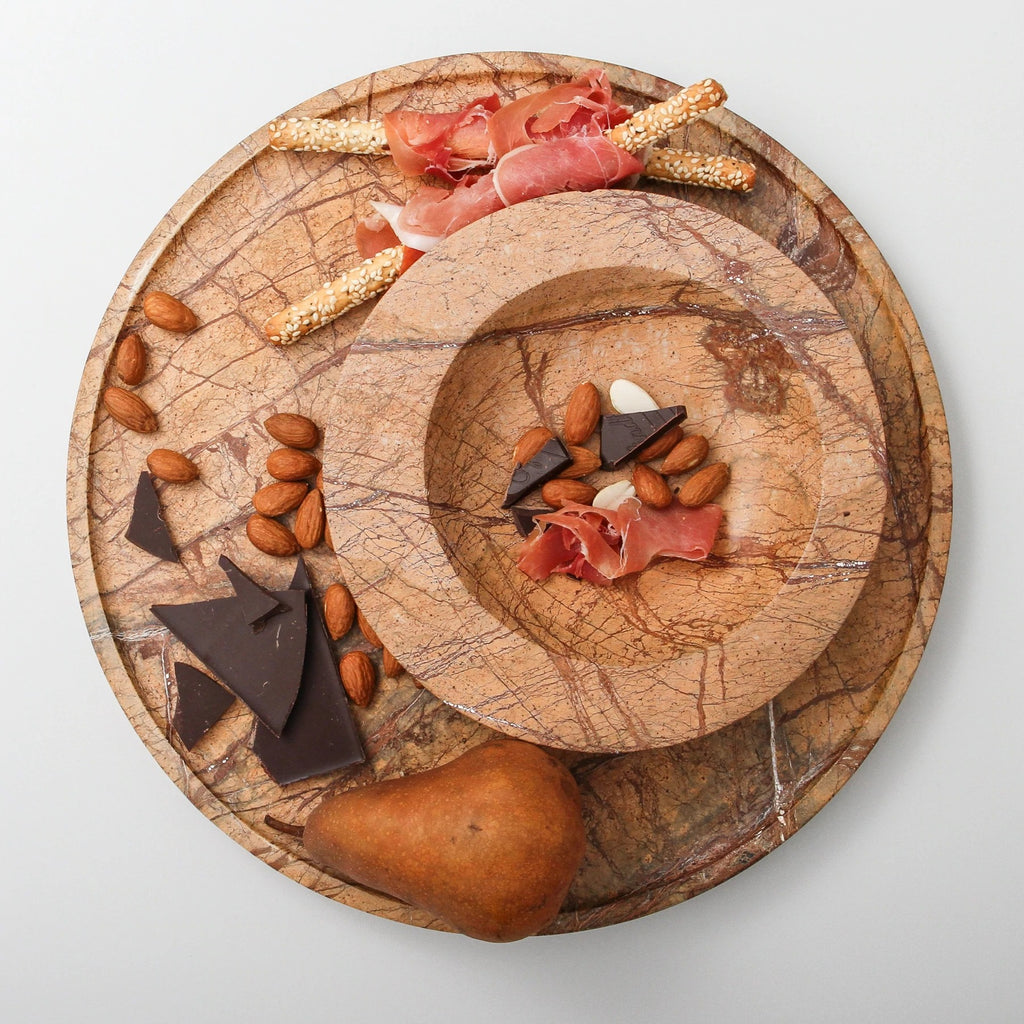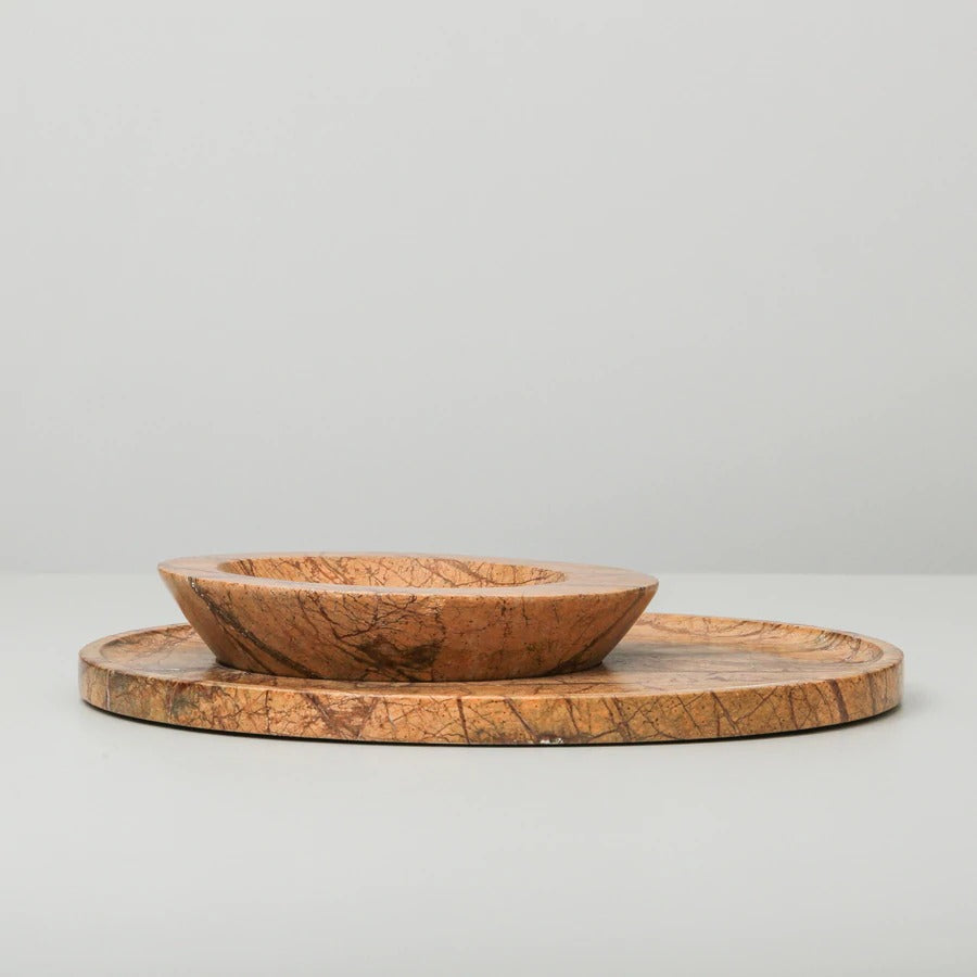 Crafted by hand from natural food-grade stone, our Axis marble bowl and platter set is chic while remaining practical enough for daily use. From dinners with loved ones to lavish themed soirees, this duo will enhance and elevate each of your curated tablescapes.