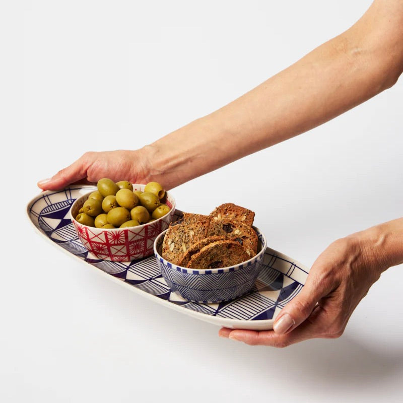 Introducing Caravan: a bohemian collection of handcrafted serving ware that brings global flair to your table. This expansive range includes statement platters, cozy Chino coffee mugs, versatile snack bowls, petite espresso cups, and elegant plates, all adorned with intricate geometric designs inspired by far-off lands. Each piece in the Caravan collection tells a unique story, allowing you to mix and match for an eclectic, worldly aesthetic or use individually as artistic accents. From casual snacks to elaborate feasts, Caravan transforms every meal into a sensory adventure. Embrace the spirit of wanderlust and add a touch of global artistry to your dining experience with this diverse, eye-catching collection.
