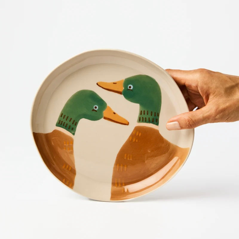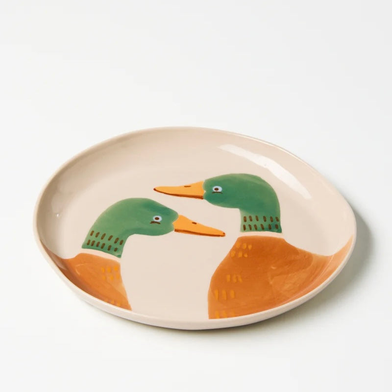 Hand-painted mallard ducks swim across this whimsical plate, bringing playful charm to your table or wall. Crafted from durable earthenware clay in our Vietnamese artisan workshop, each Pond Plate embodies our Sydney studio's commitment to functional beauty and traditional craftsmanship.