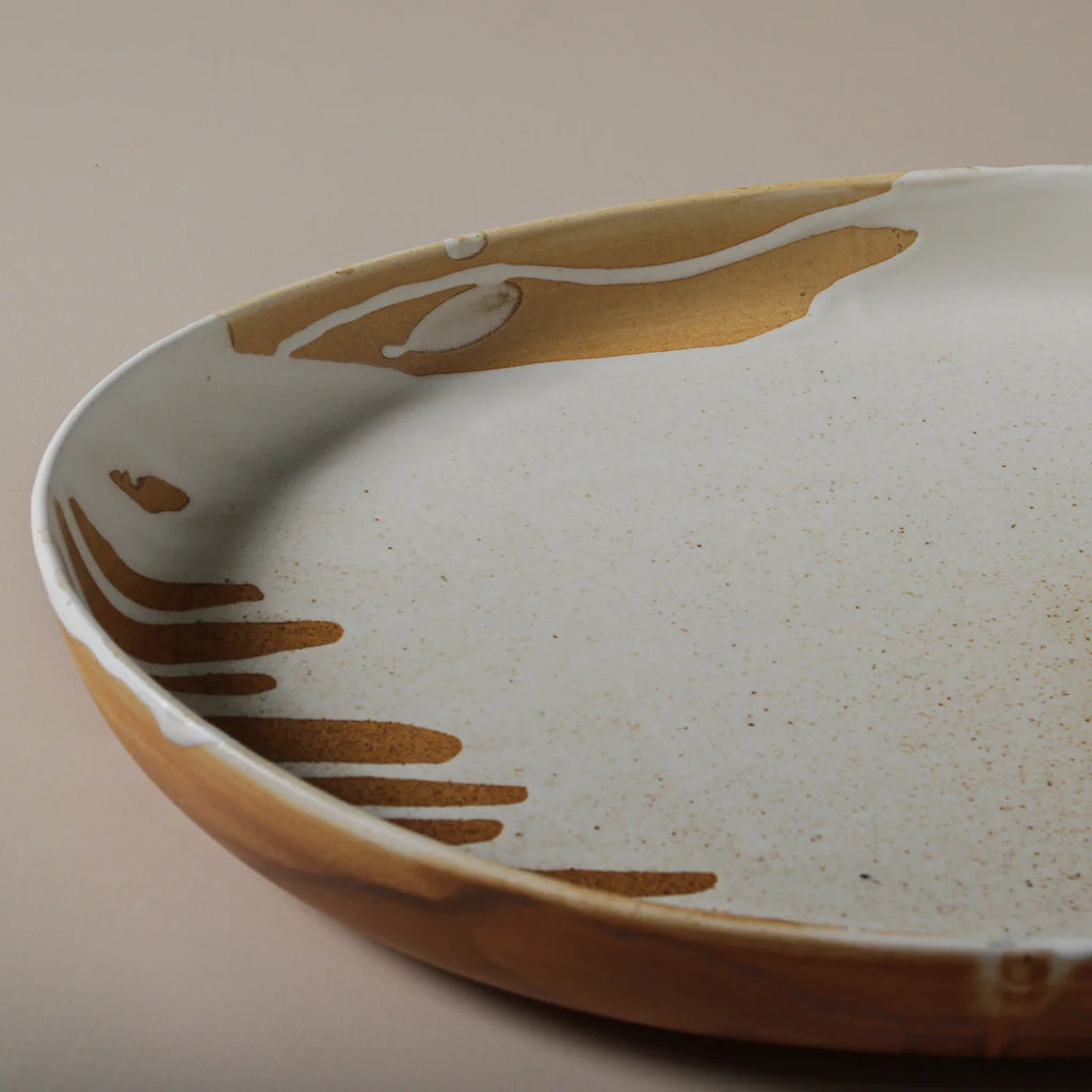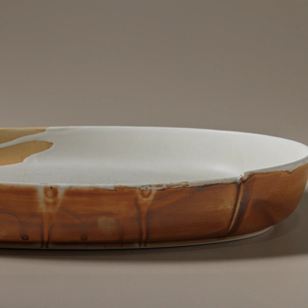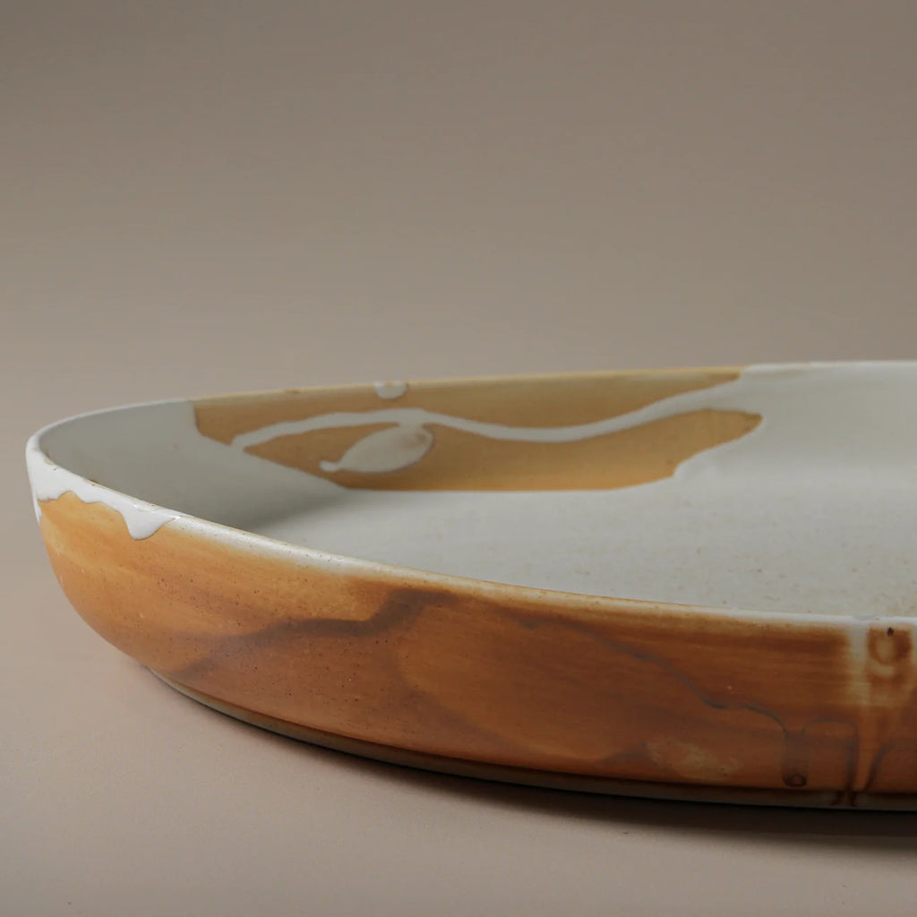 The Kintsu Serving Platter is a canvas of reactive glaze, where earthy wheat tones flow seamlessly across its porcelain surface. Perfect for presenting appetizers, desserts, or shared meals, the platter brings a sense of calm and connection. Its inspiration, drawn from water and earth, aligns with the Sense of Reality collection’s intention to merge art and functionality in interior.