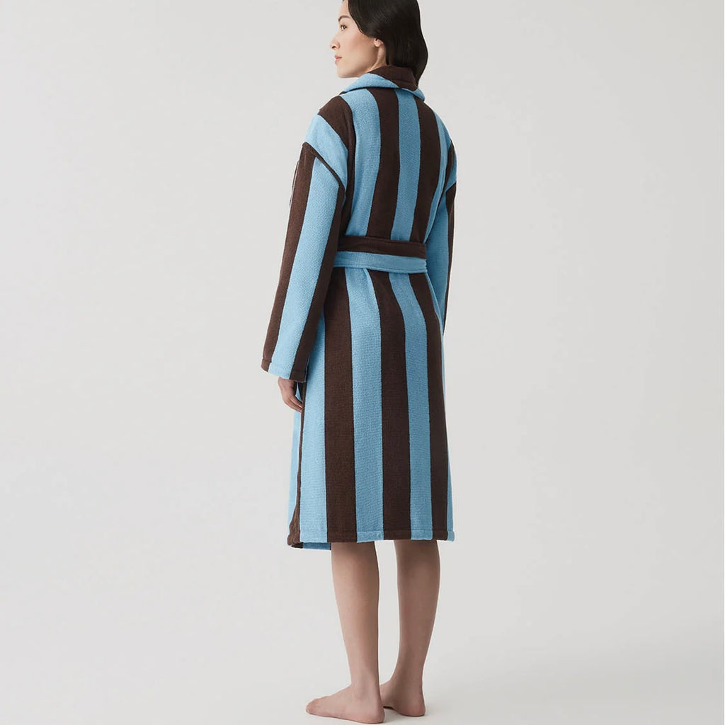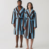 Thoughtful details elevate the experience: a unisex fit with a classic shawl collar, functional pockets, and an adjustable, removable waist tie. A discreet hanger loop inside the collar makes storage simple, while its versatile design can be worn open or tied. This is a robe designed to be lived in—it’s comfort, style, and function, all in one.