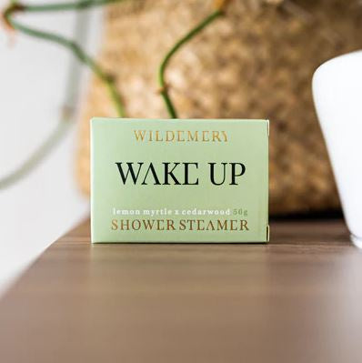 Our WAKE UP shower steamer is a crisp and zesty blend of Lemon Myrtle and Cedarwood essential oils. Ideal for those who shower in the morning who need a fresh burst of cool and green scents. Bring some well deserved indulgence into your everyday and get going with our WAKE UP essential oil shower steamer.