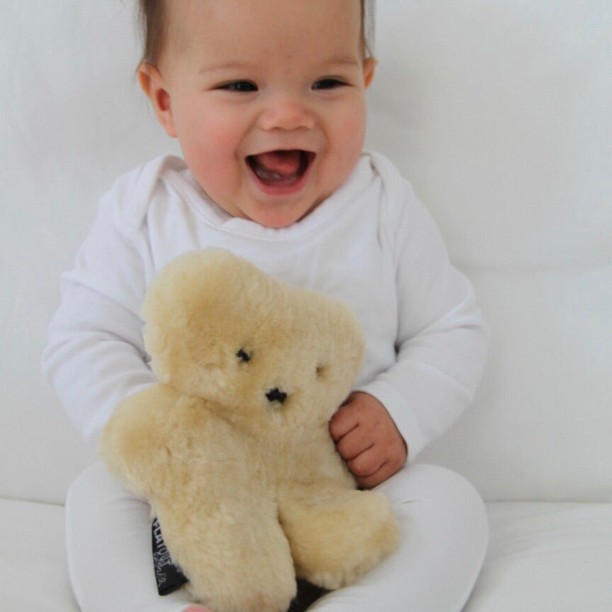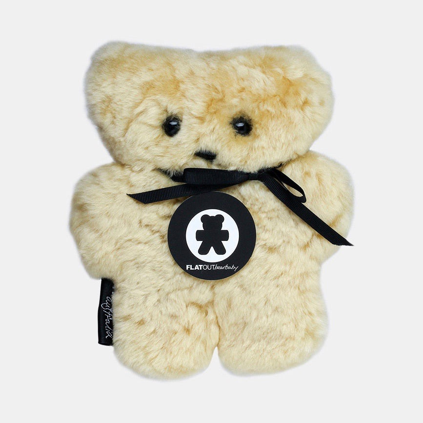 Soft, cuddly and flat, the FLATOUTbear is made of 100% Australian sheepskin shaped like a teddy bear. The FLATOUTbear is a unique product primarily used as a baby and children’s comforter. It becomes a best friend and a well loved member of the family. 18cm tall x 16cm wide x 4cm flat Care: Cold spot clean and dry in shade. We suggest that you follow the SIDS guidelines as well as using a common sense approach when giving children the FLATOUTbear. Like with anything, we suggest parental supervision and we hope that the FLATOUTbear becomes a well-loved member of your family