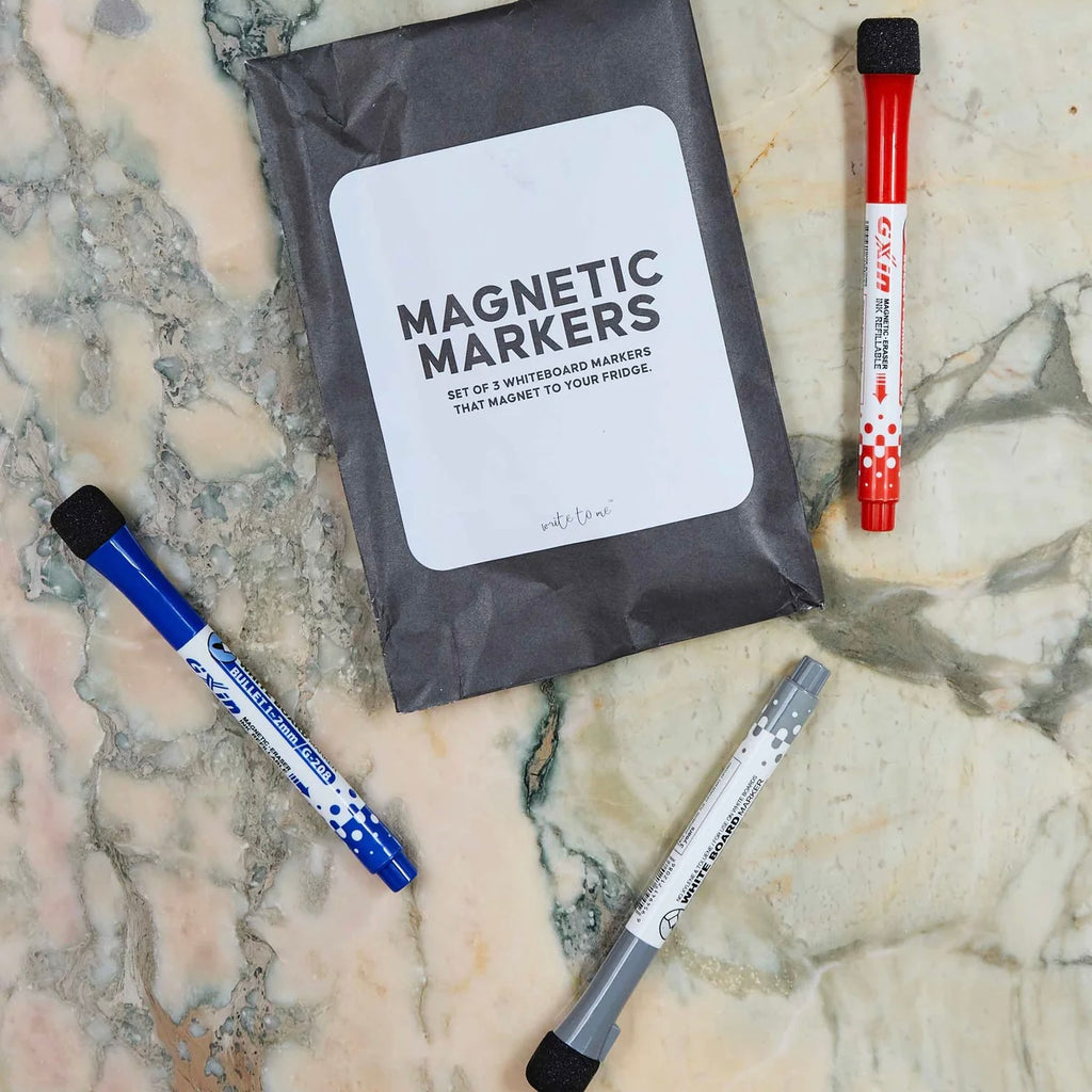 Make your Life on the Fridge planners pop with our Magnetic Marker Set. Designed to stick right where you need them, each marker has a magnetic lid so it lives on your fridge (no more disappearing into the junk drawer) and a built-in eraser for quick, easy changes.