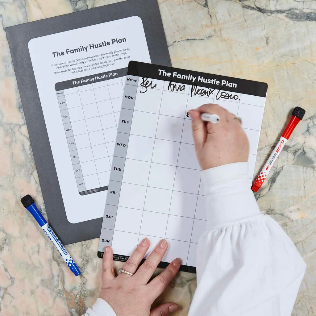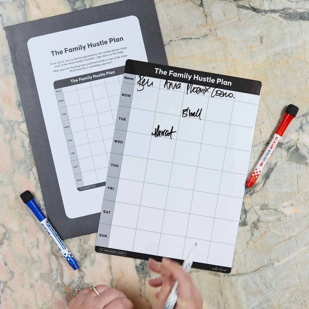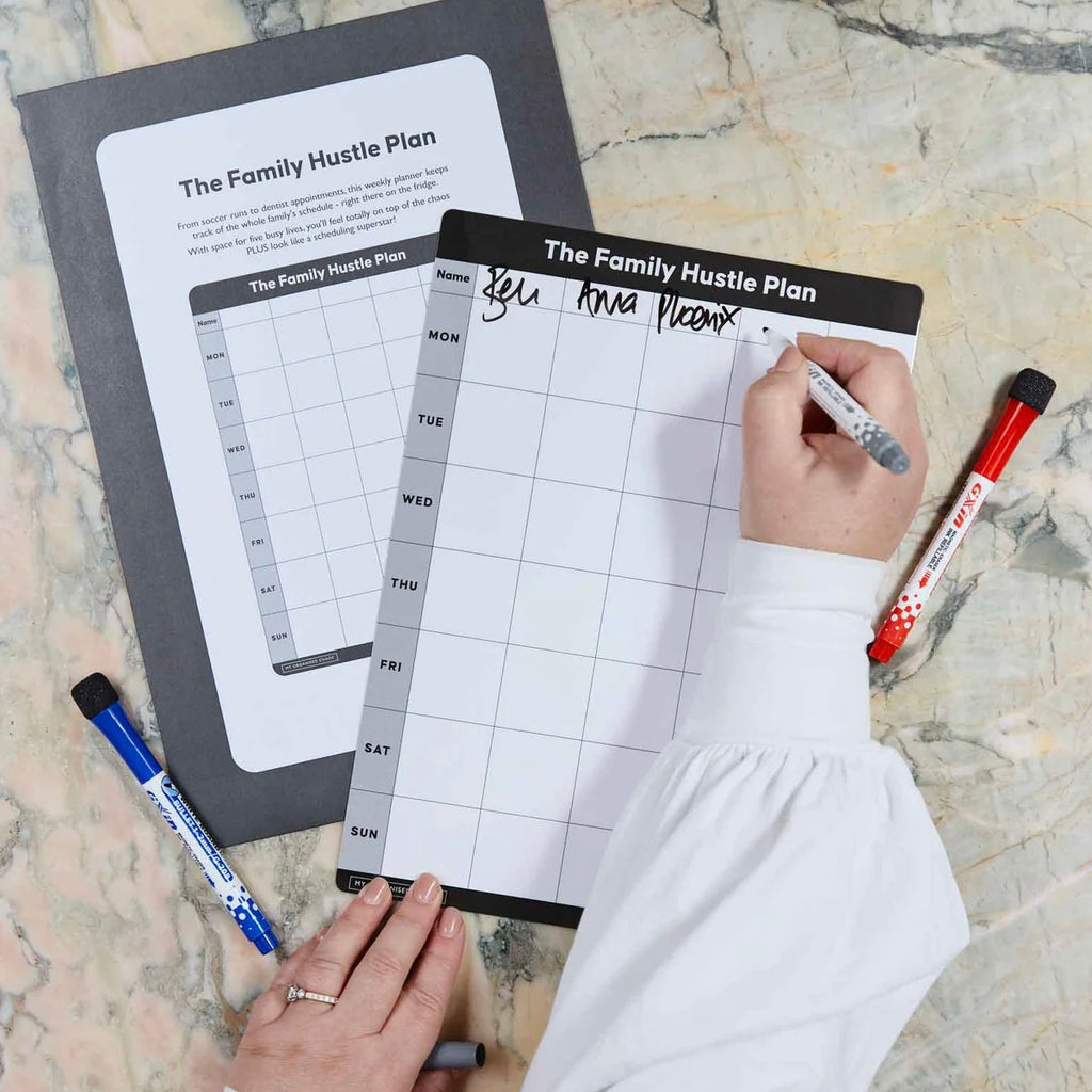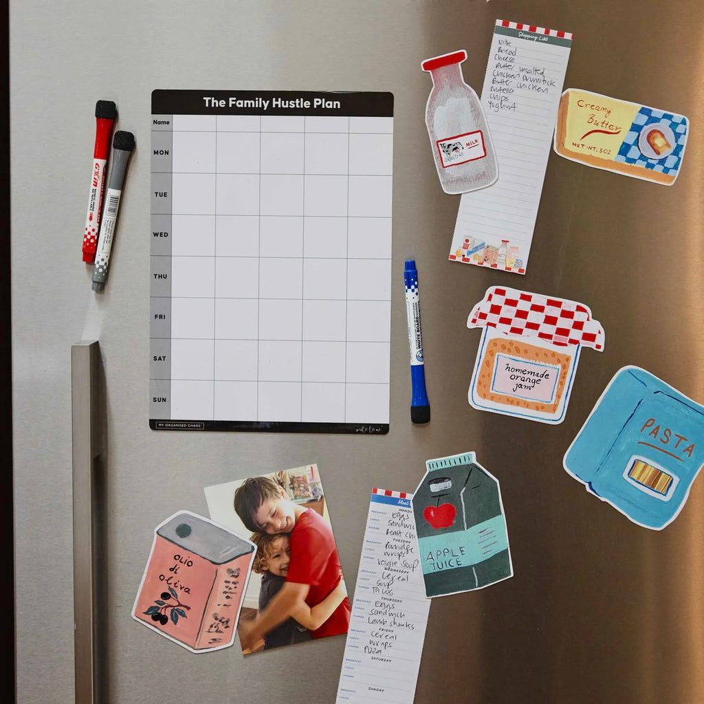 Life moves fast. Between school drop-offs, sports practice, playdates, and appointments, it’s easy for plans to get lost in the shuffle. The Family Hustle Magnetic Planner puts the week’s main events in one clear view, right on the fridge, so the whole household stays in sync.