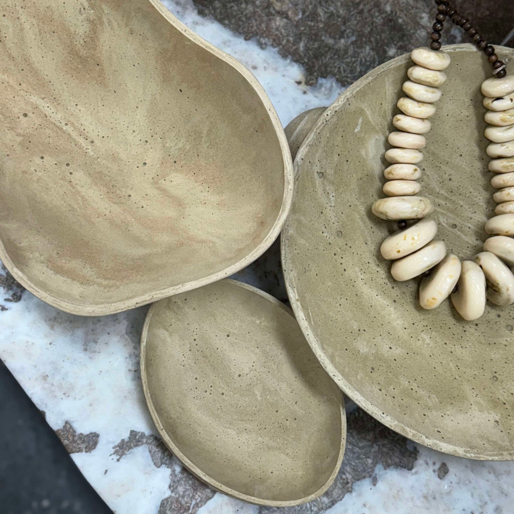 The Bloom Dish has been hand poured in India using resin to create a durable travertine look.