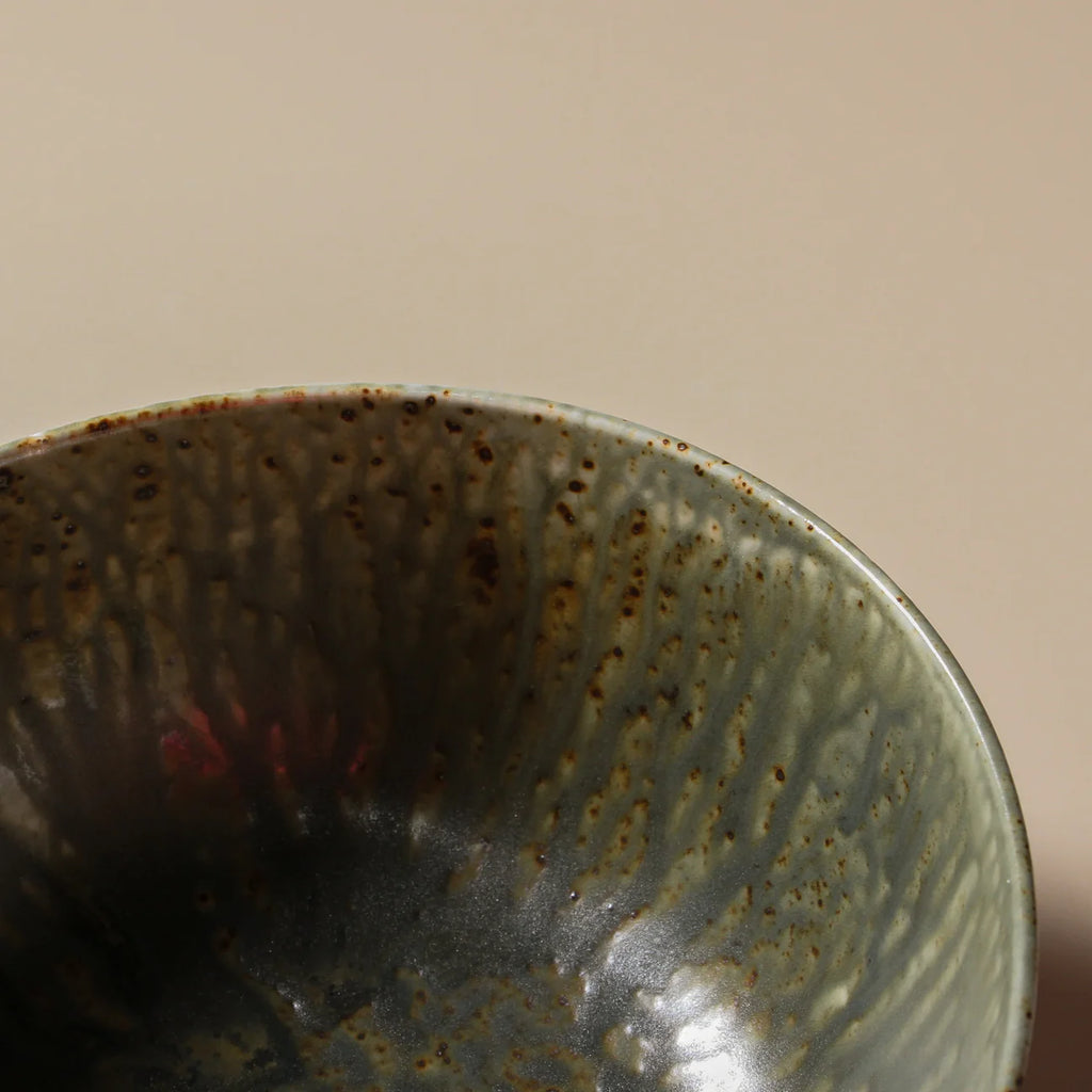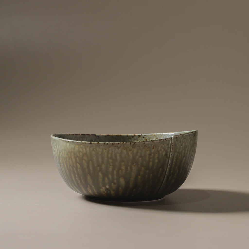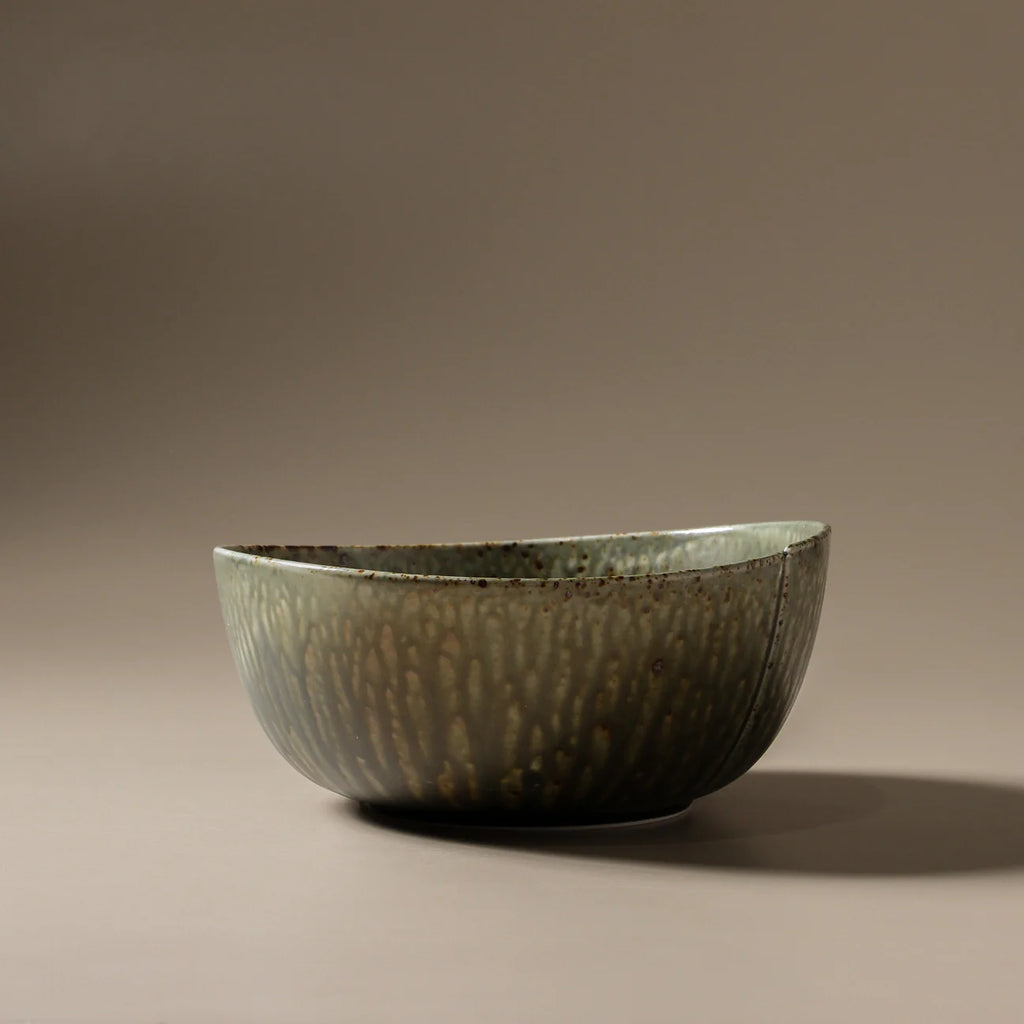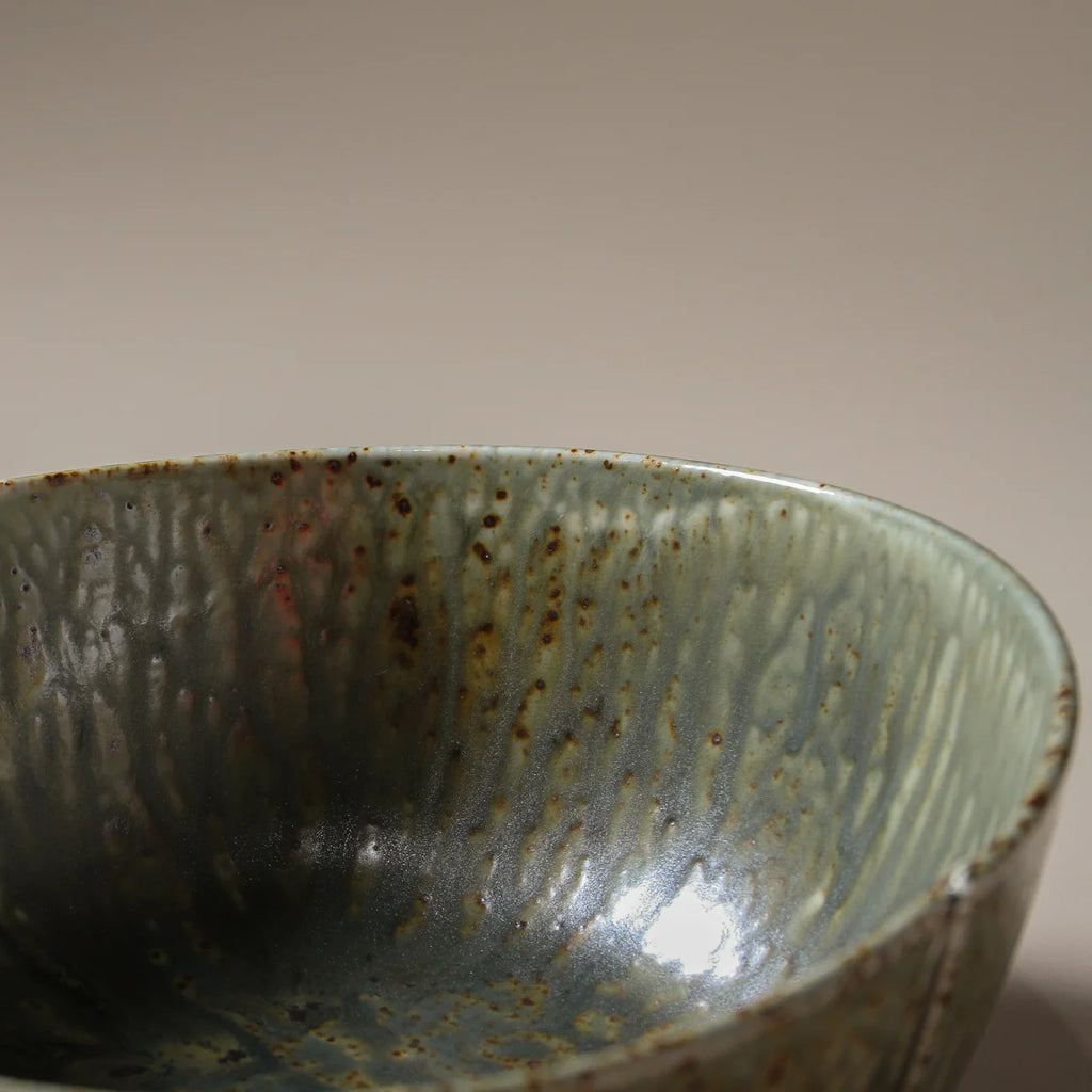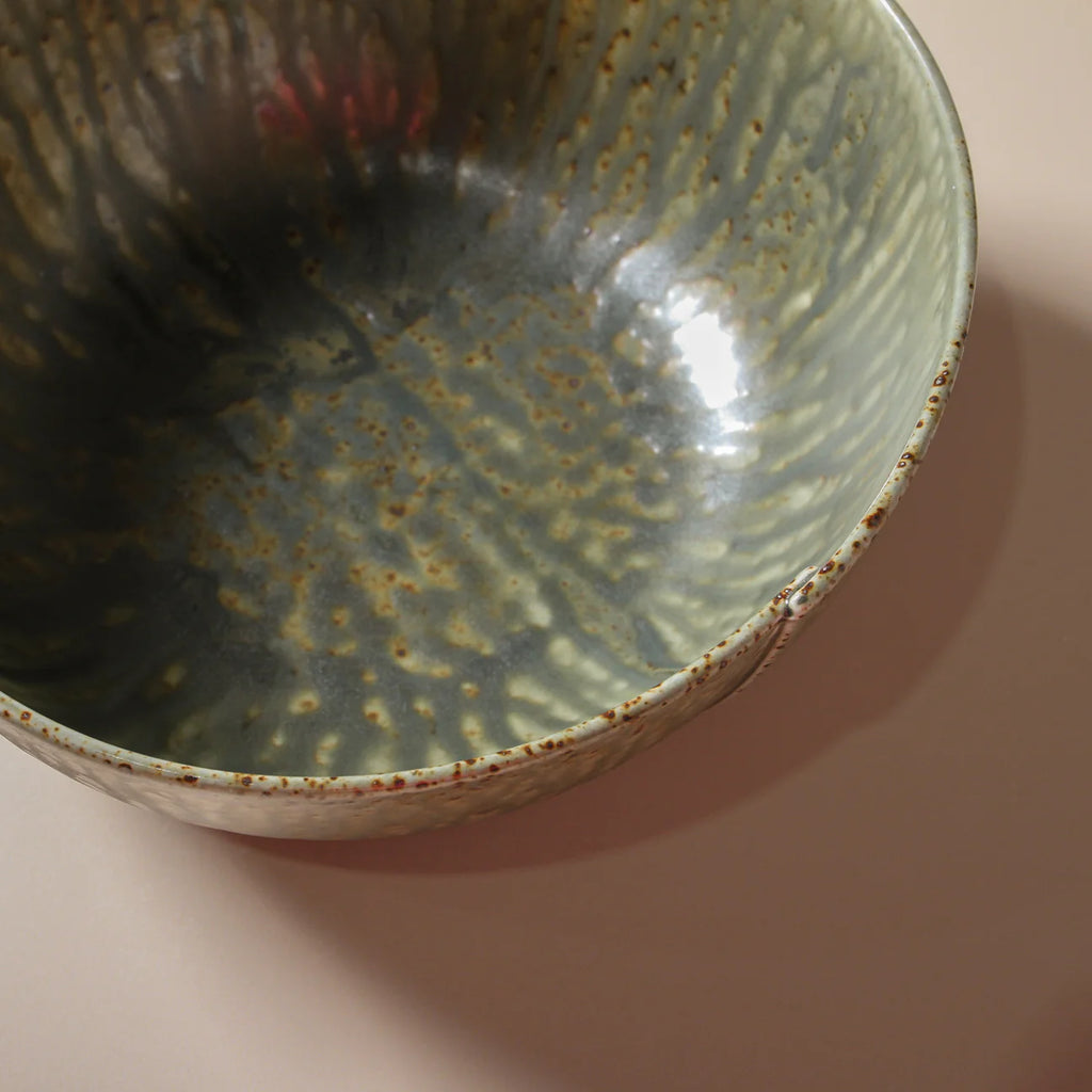 The Mizu Large Bowl offers a sculptural presence with its flowing reactive glaze and earthy palette of greens, blues, and bronze. Its rippled texture and organic form reflect the wabi-sabi philosophy, embracing natural imperfections. Perfect for serving salads or as a centrepiece, the bowl’s muted, tonal colours and hand-made look add depth and harmony to any tablescape.