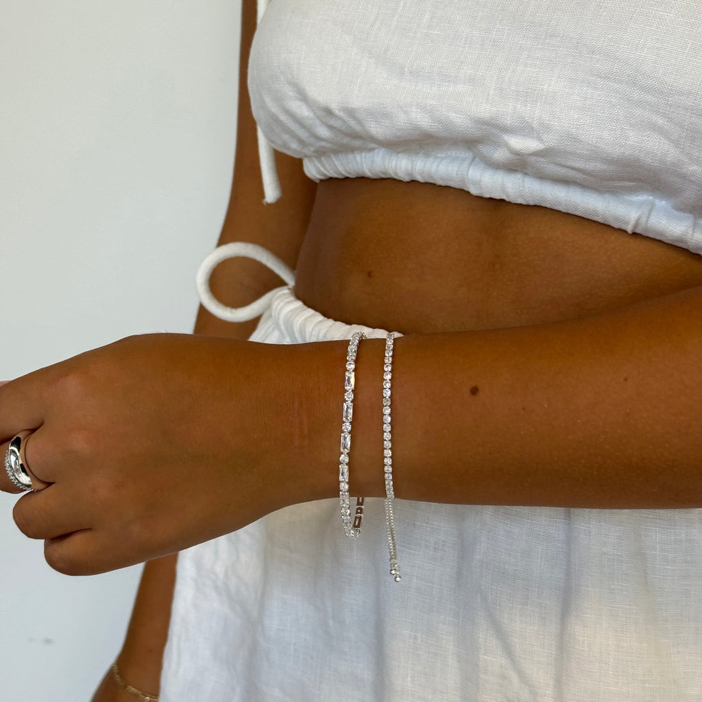 Meet our Nikki Tennis Bracelet – an exquisite blend of timeless elegance and comfort. This bracelet features a classic design with sparkling stones, exuding a refined charm. What sets Nikki apart is its adjustable design, ensuring the perfect fit for any wrist. Elevate your style effortlessly with the Nikki Tennis Bracelet, a versatile accessory that adds a touch of sophistication to every occasion.