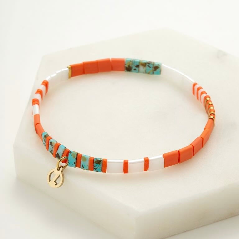 The Tile Bracelet – coral a fun, colourful design that will be perfect for sunny summer days. Wear it solo or as a stacking piece.