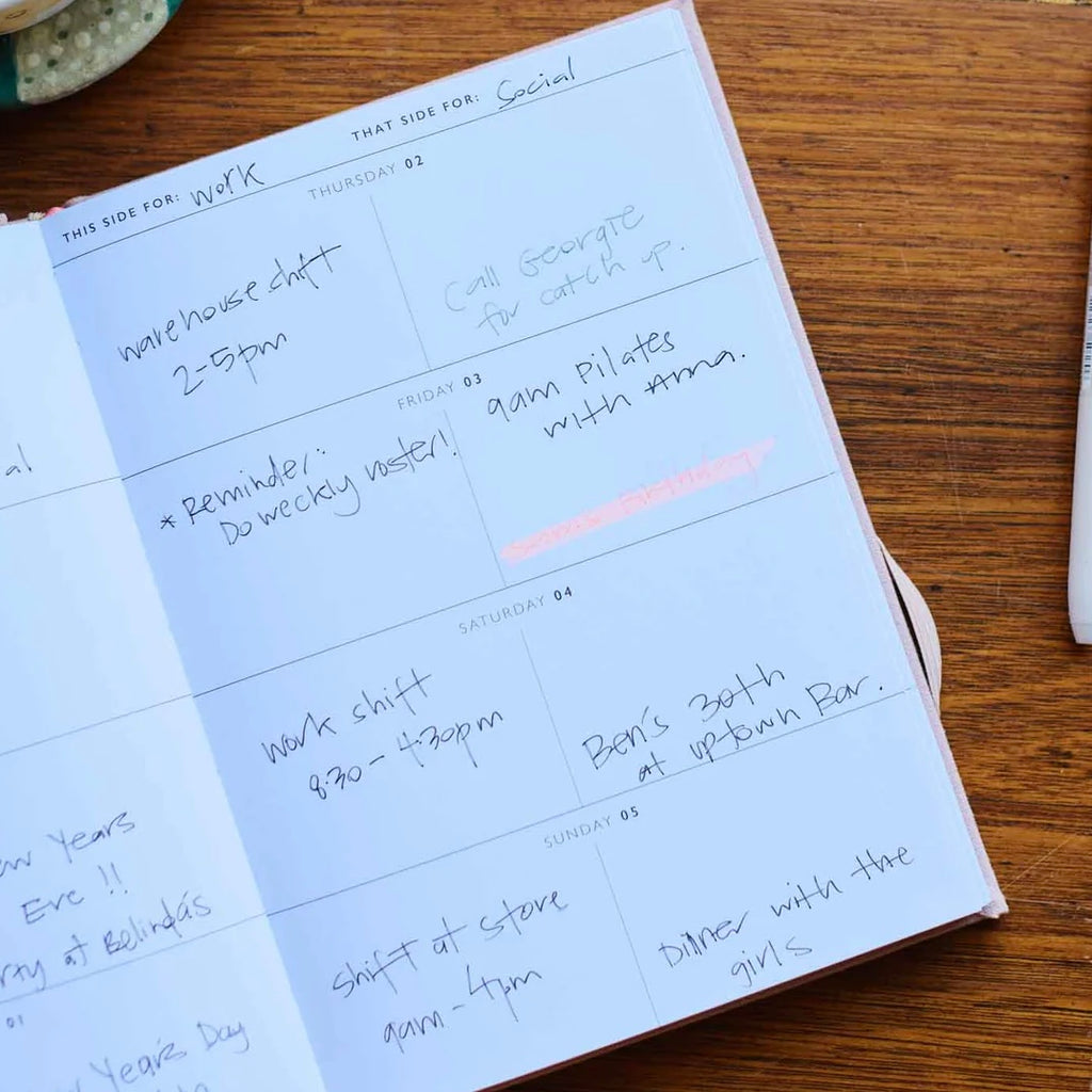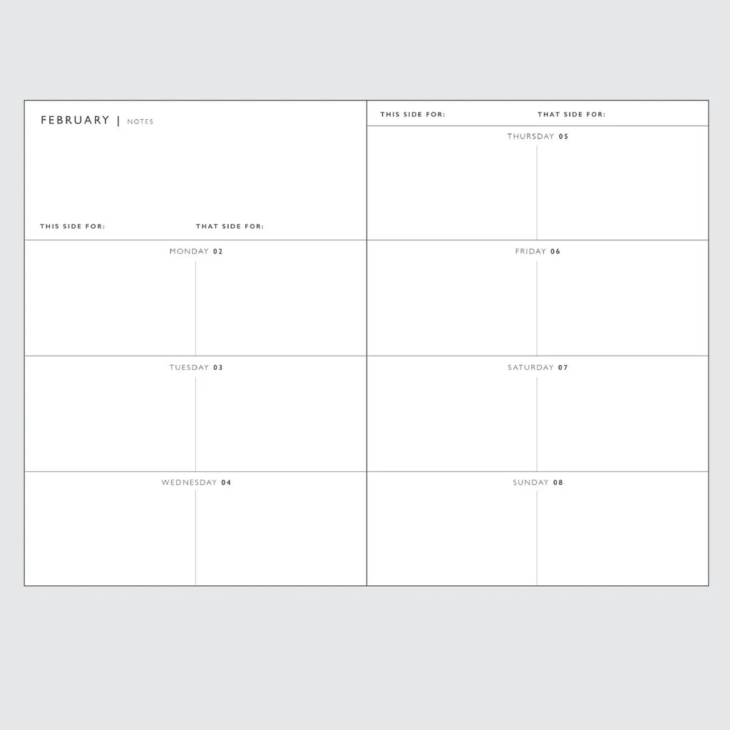 Meet the 2026 weekly planner, collaboration with Rachel Castle, that’s here to whip your week into shape and keep your chaos in check. With our original “this side for / that side for” layout, you can plan two areas of your life side by side - work and home, business and study, you name it. No more scribbling all over the place or losing track of what’s important.