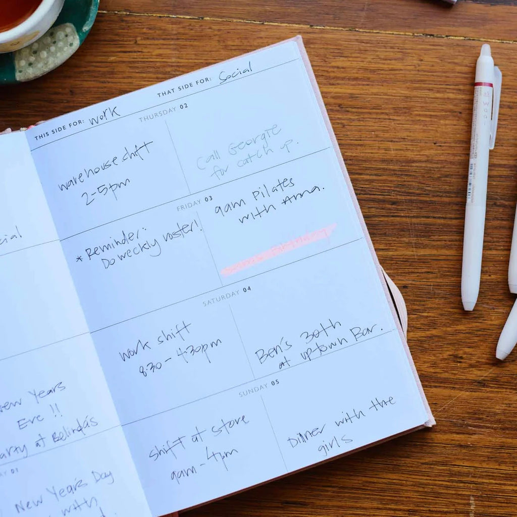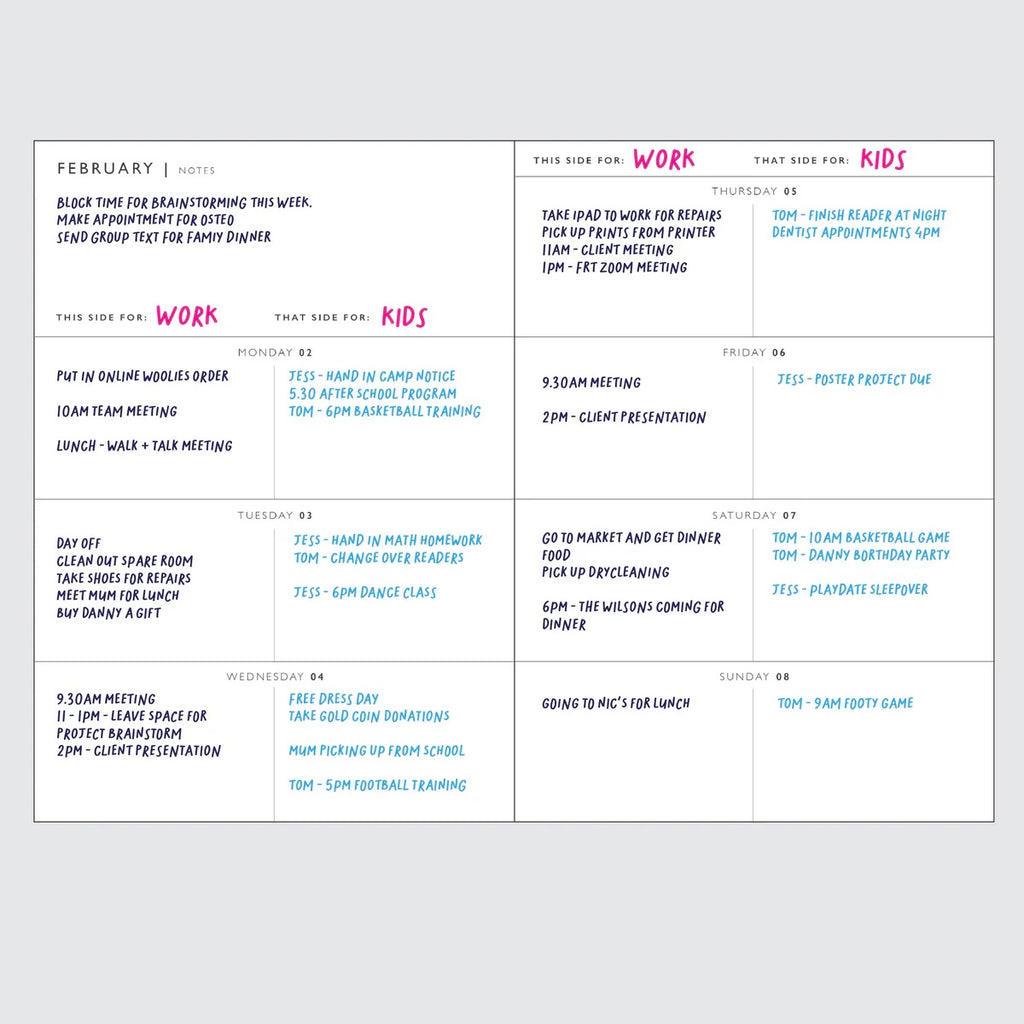 Meet the 2026 weekly planner, collaboration with Rachel Castle, that’s here to whip your week into shape and keep your chaos in check. With our original “this side for / that side for” layout, you can plan two areas of your life side by side - work and home, business and study, you name it. No more scribbling all over the place or losing track of what’s important.