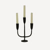 Hand forged, cast iron candlestick. Holds three tapered candles.