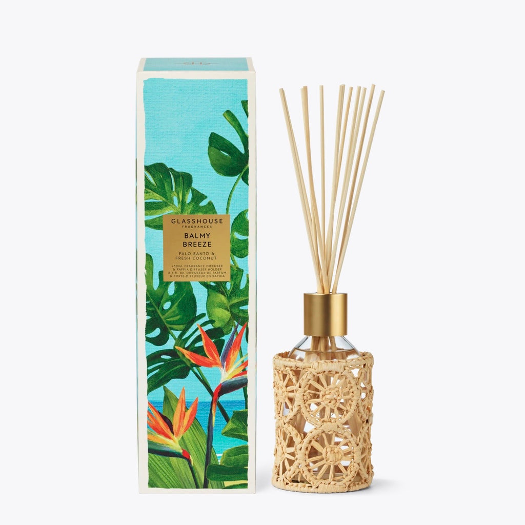 Housed in a handmade Raffia holder, reusable collector's item designed to fit 250mL Fragrance Diffusers.