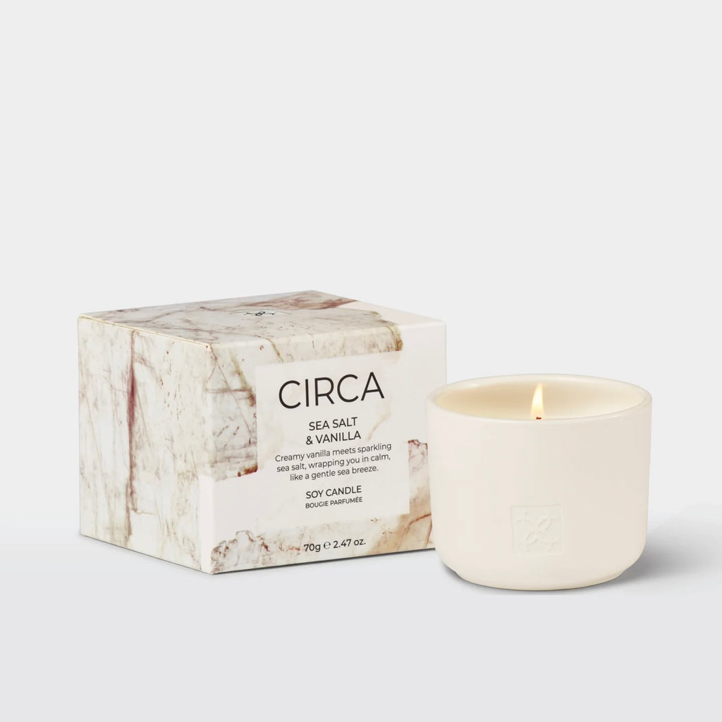Creamy vanilla meets sparkling sea salt, wrapping you in calm, like a gentle sea breeze.