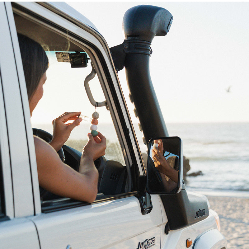This set includes four unscented felt balls with a branded charm and elastic string, making them easy to hang in your car and a 5mL bottle of our Sweet Pea fragrance oil, a playful mix of sun-drenched peach nectar, honeydew, and floral notes that mix with notes of sweet vanilla and woodsy warmth to create an irresistibly inviting fragrance. Once you've finished your 5mL fragrance, you can reorder our Sweet Pea 15mL Fragrance Oil Refill or try a new fragrance from our selection.