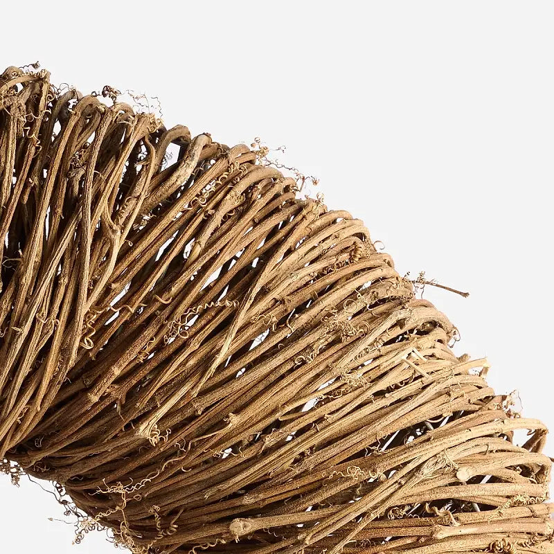 Crafted from richly entwined grapevine over a discrete wire frame, the Twist Grande Wreath makes a bold, sculptural statement. Solid, oversized, and full of natural texture, it creates visual impact whether hung on a wall, door or over a fireplace or alternatively used as a striking table centrepiece. Handsome on its own or styled, it offers a versatile foundation for year-round style. Available in three sizes.